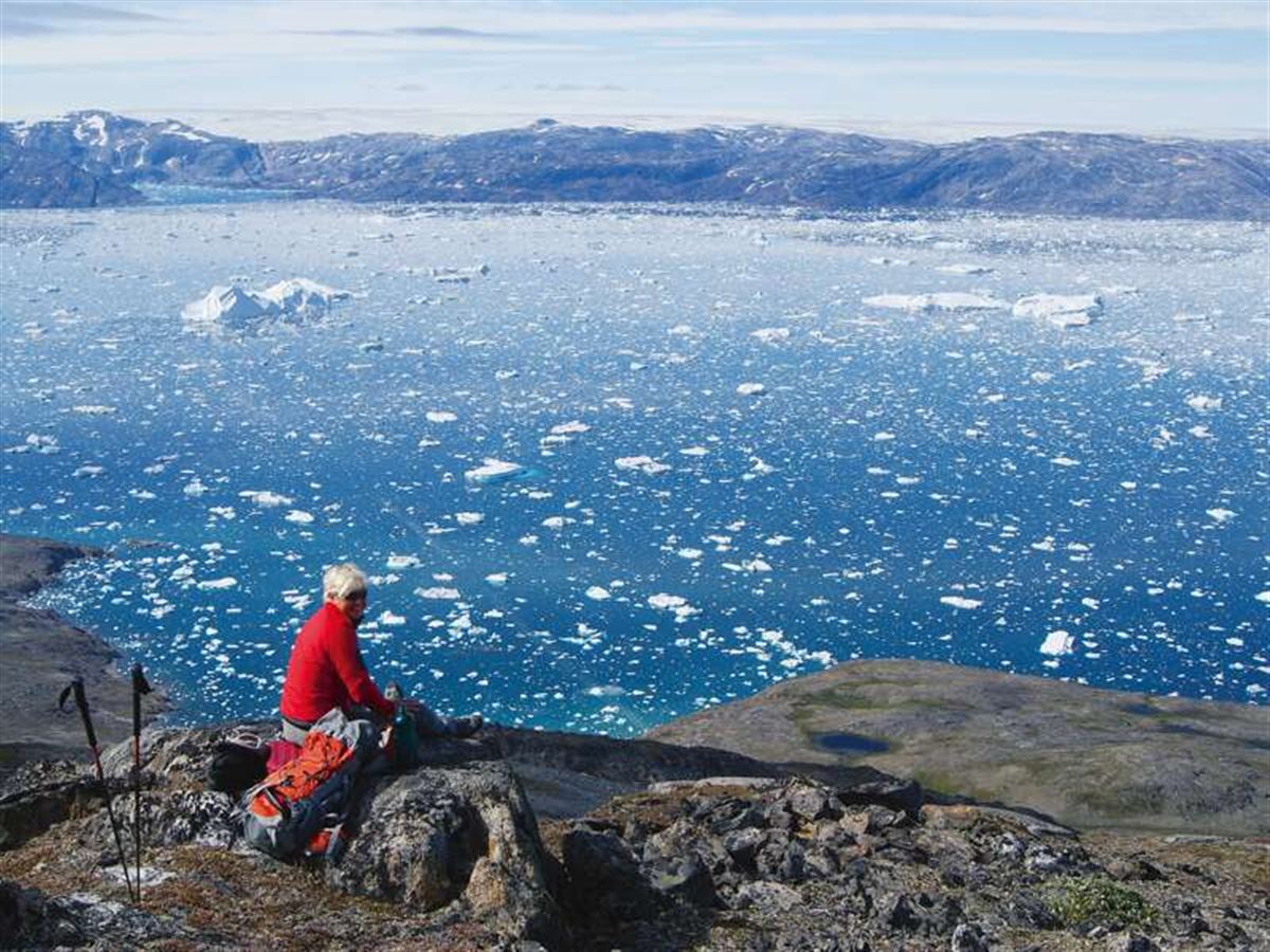 Vor uns liegt der Hausberg von Tasiilaq - und wir wollen hinauf. Nachdem wir die Siedlung hinter uns gelassen haben, wandern wir an eisigen Gebirgsbächen und grünen Wiesen vorbei durch das Blumental. Die liebliche Landschaft wird aber schnell rauer und erst ein teilweise recht steiler Anstieg über wegloses Blockgelände führt uns zum Gipfel des Qaqertivagajik. Was für ein Schauspiel - unter uns treibt der größte Eisstrom der Erde gigantische Eisberge durch das Wasser. Die bizarren Formen lassen unserer Fantasie freien Lauf, bei gutem Wetter sehen wir die Eisschollen bis zu 150 km weit in der Sonne blitzen. Es lohnt sich aber auch, einen Blick nach Norden zu werfen. Tasiilaq schlummert wie eine bunt gewürfelte "Spielzeugwelt" am blauen Fjord. Und im Westen? Ganz in der Ferne entdecken wir das Inlandeis zwischen den gezackten Bergkuppen. Wir lassen die Eindrücke in Ruhe auf uns wirken, bevor wir zurück wandern.