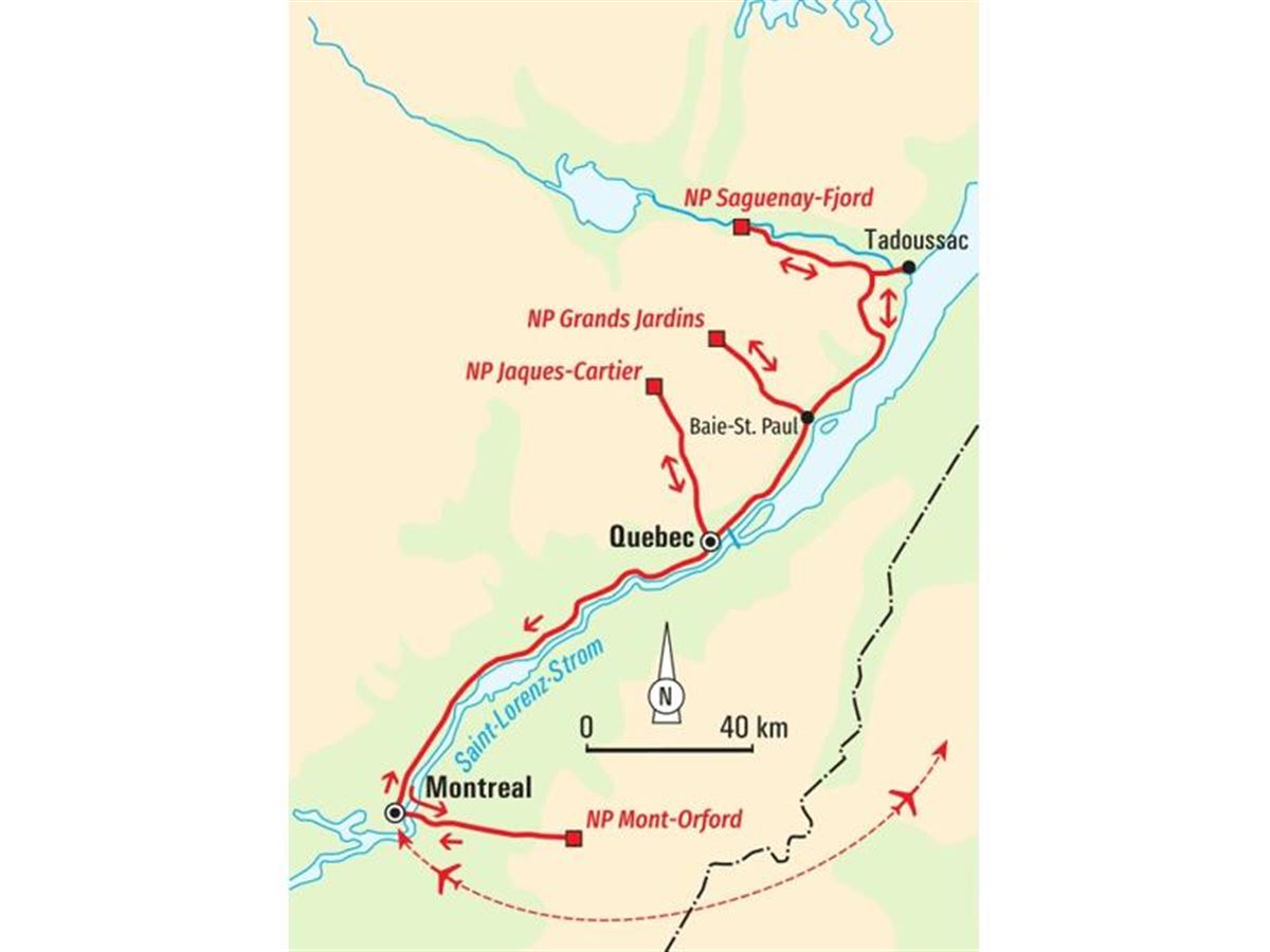 Ein weiterer Nationalpark in den Laurentinischen Bergen ist der Jacques-Cartier-Nationalpark. Hier finden wir ein weites Gebirgsplateau, von Gletschern geschaffene Täler und vor allem ausgedehnte Wälder in ihrer prachtvollen Herbstfärbung. Unsere Wanderung führt uns durch die Täler bis zum Jacques-Cartier-Fluss. Am Nachmittag fahren wir die kurze Strecke nach Québec-Stadt und haben am Abend bestimmt noch Zeit für einen Bummel durch die Altstadt.