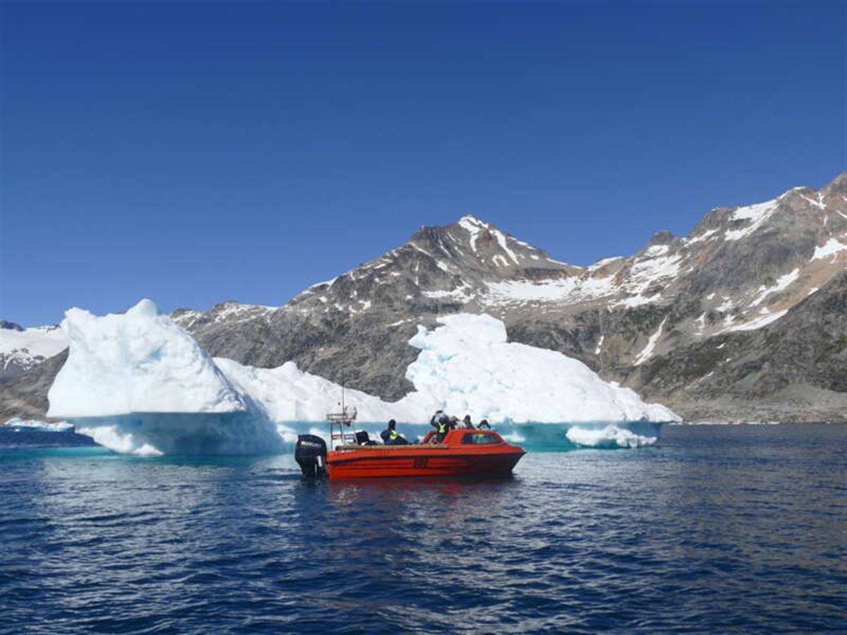 Vor uns liegt der Hausberg von Tasiilaq - und wir wollen hinauf. Nachdem wir die Siedlung hinter uns gelassen haben, wandern wir an eisigen Gebirgsbächen und grünen Wiesen vorbei durch das Blumental. Die liebliche Landschaft wird aber schnell rauer und erst ein teilweise recht steiler Anstieg über wegloses Blockgelände führt uns zum Gipfel des Qaqertivagajik. Was für ein Schauspiel - unter uns treibt der größte Eisstrom der Erde gigantische Eisberge durch das Wasser. Die bizarren Formen lassen unserer Fantasie freien Lauf, bei gutem Wetter sehen wir die Eisschollen bis zu 150 km weit in der Sonne blitzen. Es lohnt sich aber auch, einen Blick nach Norden zu werfen. Tasiilaq schlummert wie eine bunt gewürfelte "Spielzeugwelt" am blauen Fjord. Und im Westen? Ganz in der Ferne entdecken wir das Inlandeis zwischen den gezackten Bergkuppen. Wir lassen die Eindrücke in Ruhe auf uns wirken, bevor wir zurück wandern. Beim Abschiedsabendessen lassen wir die Erlebnisse in der Arktis noch einmal Revue passieren.