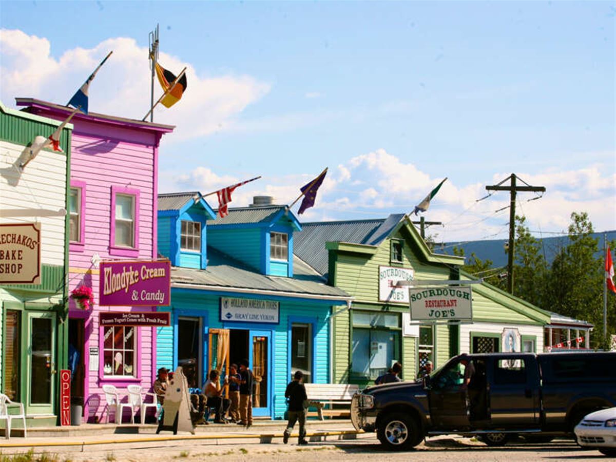 Lohnenswert ist auch eine Wanderung auf den Hausberg von Dawson, den Midnight Dome. Von dort aus bietet sich ein einmaliger Ausblick über die Goldfelder des Klondikes. Immer noch erinnert die durchfurchte Landschaft um Dawson an die riesigen Goldbagger (Dredges), die sich hier ihren Weg durch die Landschaft bahnten. Der größte dieser Goldbagger (Dredge Nr. 4) ist sogar noch erhalten und kann auf Wunsch besichtigt werden. Alternativ bietet Dawson eine Reihe schöner Museen und auch Stadtführungen werden angeboten. Am Abend steht ein Besuch der berühmten Diamond Tooth Gerties Gambling Hall auf dem Programm. Wen bis dahin die damaligen Ereignisse noch nicht in den Bann gezogen haben, den erwischt es spätestens jetzt. Tanzende Can-Can Girls, Texas Hold'em Poker und Trubel wie zu Goldrausch-Zeiten.