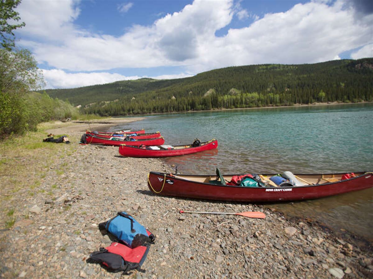 Jetzt gehts richtig los! Über eine Fahretappe auf dem North Klondike Highway gelangen wir an das einst als Missionsstation genutzte Örtchen "Little Salmon Village". Dort lassen wir unsere Kanus zu Wasser und fahren nun, auf der vor über 100 Jahren von Goldsuchern und Voyageuers genutzten Route, nach Dawson City. Nutzen Sie die gemeinsamen Stunden am Lagerfeuer, um interessante Fakten und Geschichten über diese Zeit von unserer Reiseleitung zu erfahren.Kanufahrt ca. 5,5 Stunden