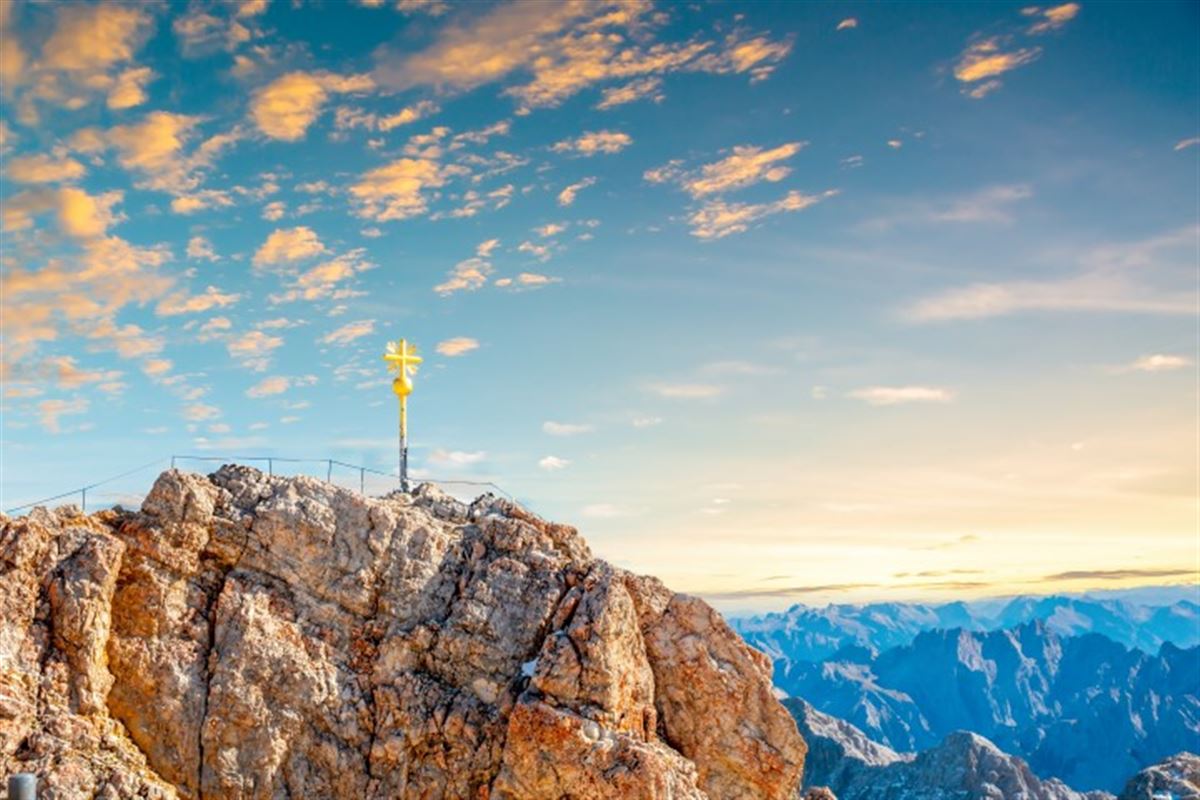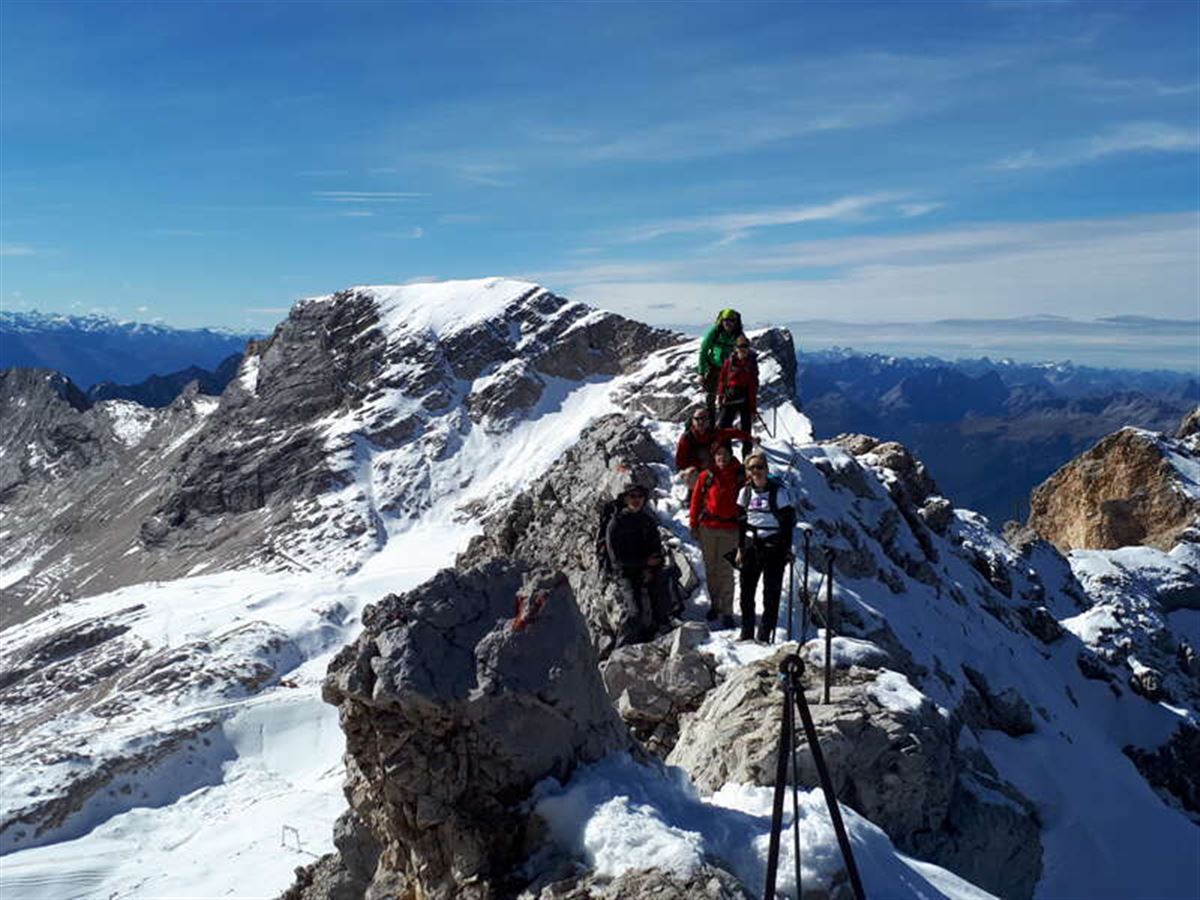 Wir starten sehr früh und steigen über den Felsensteig hinauf zur Knorrhütte. Von dort folgen wir dem wieder etwas einfacheren Weg über alt-ergraute und geröllreiche Moränen. Schließlich erreichen wir auf das Zugspitzplatt und das Restaurant Sonn-Alpin. Für den jetzt folgenden letzten Aufstieg und Höhepunkt unserer Tour benötigen wir auf jeden Fall ausreichende Trittsicherheit, da die letzten Höhenmeter auf einem schmalen und mit Drahtseilen versicherten Bergpfad verlaufen. Je nach Witterung und Verfassung kann dieser letzte Gipfelaufstieg auch mit der Seilbahn abgekürzt werden. Nach einer ausgedehnten Gipfelrast und dem optionalen Besuch der Schneekristall-Welt und des Erlebnismuseum "Faszination Zugspitze" fahren wir mit der neuen und spektakulären Eibsee-Seilbahn hinunter zum grünblau schimmernden Eibsee. Von dort aus geht es weiter mit der Zugspitz-Zahnradbahn zum Ausgangspunkt unserer Tour. Glücklich und erfüllt vom Gipfelerlebnis "Top of Germany" verabschieden wir uns und treten die Heimreise an.