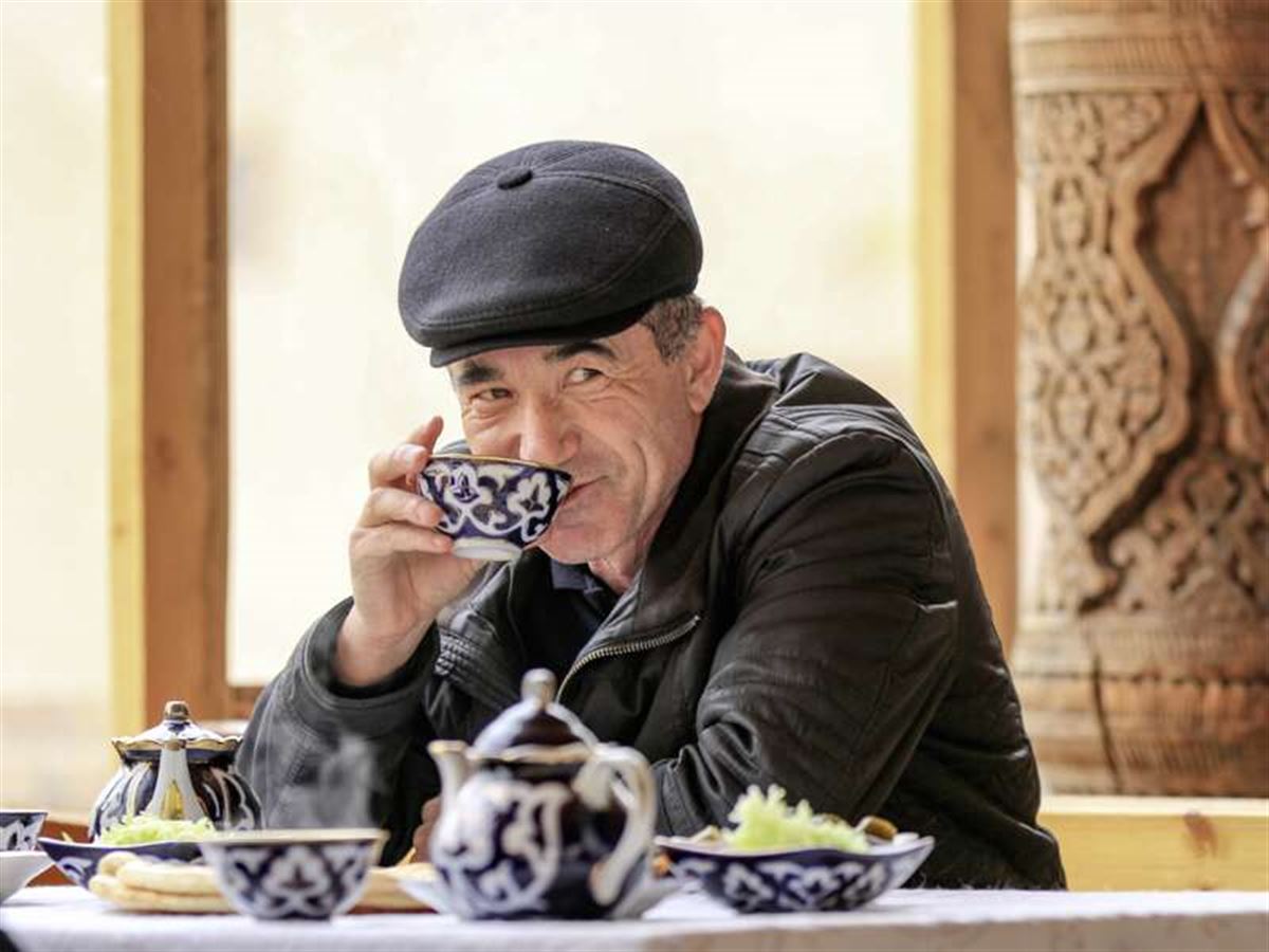 Ein Meer aus türkisfarbenen Fliesen trägt uns vorbei an lehmbraunen Mauern, Moscheen, Koranschulen und Mausoleen. Und lässt uns zwischendurch im Basar stranden – auf einer Insel frischer Waren inmitten der Wüste! Mittagessen schwäbisch? Nein, Shortosh, die lokalen Kräuterspätzle. Danach Freizeit – klar, als Usbekistankenner relaxen Sie schon ganz gekonnt auf dem Tapchan im Garten eines Teehauses.