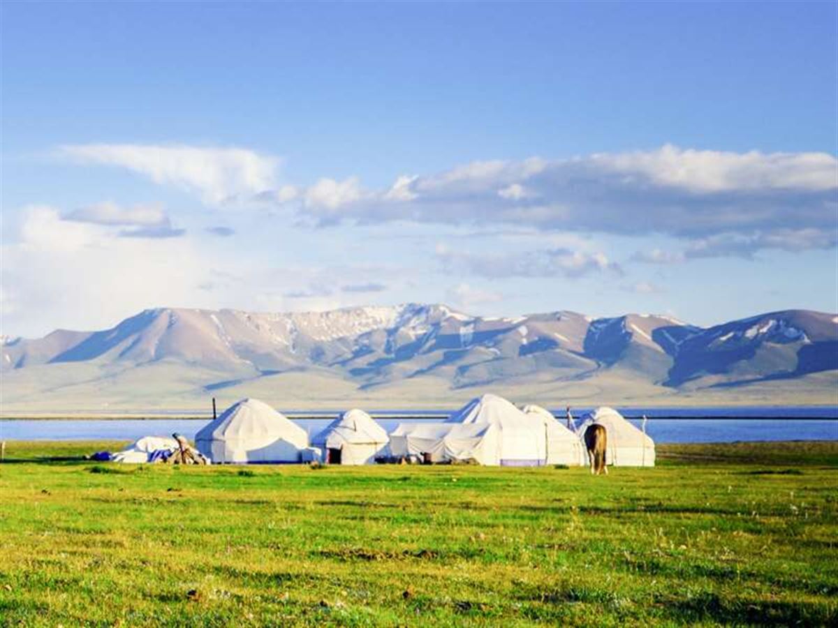Immer der Schlucht des Flusses Chichkan nach in den gleichnamigen Nationalpark und hinauf auf den 3184 m hohen Ala-Bel-Pass. Auf der Weiterfahrt durch das Susamyr-Hochtal (2200 m) lassen wir uns Zeit: saftige Almwiesen mit Schaf- und Kuhherden, immer wieder die Jurten der Hirten, darüber dramatische Gebirgszüge - Motive für viele Fotostopps. Übernachtung und Abendessen in Familienpensionen in Kochkor (1767 m).