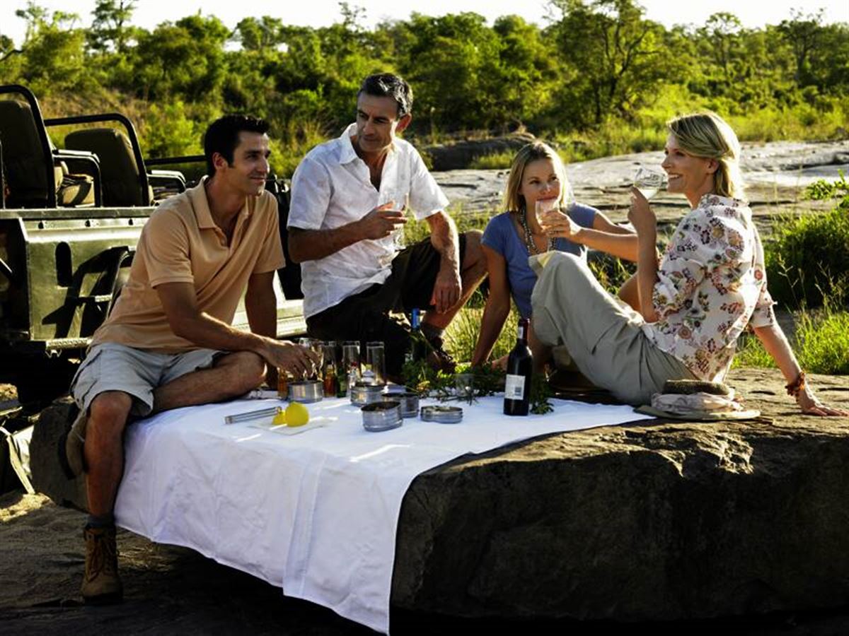 Safari-Weckruf: 5 Uhr morgens. Kurzes Warm-up mit Kaffee, Tee und Cookies, dann in die Wildnis! Am Steuer der Jeeps die Ranger und wir am Auslöser der Kamera. Bereit für Big Pictures von den Big Five – Nashorn, Elefant, Löwe, Leopard, Büffel. Zurück in der Lodge: alle Akkus aufladen, frühstücken, sonnen, im Pool baden, relaxen vor der Nachmittagstour, dieses Mal zu Fuß durch den Busch. 365 Vogelarten gibt es im Reservat zu entdecken. Darauf einen Gin Tonic, Abendessen am Lagerfeuer und erneut Augen nach oben: Wer findet das Kreuz des Südens?