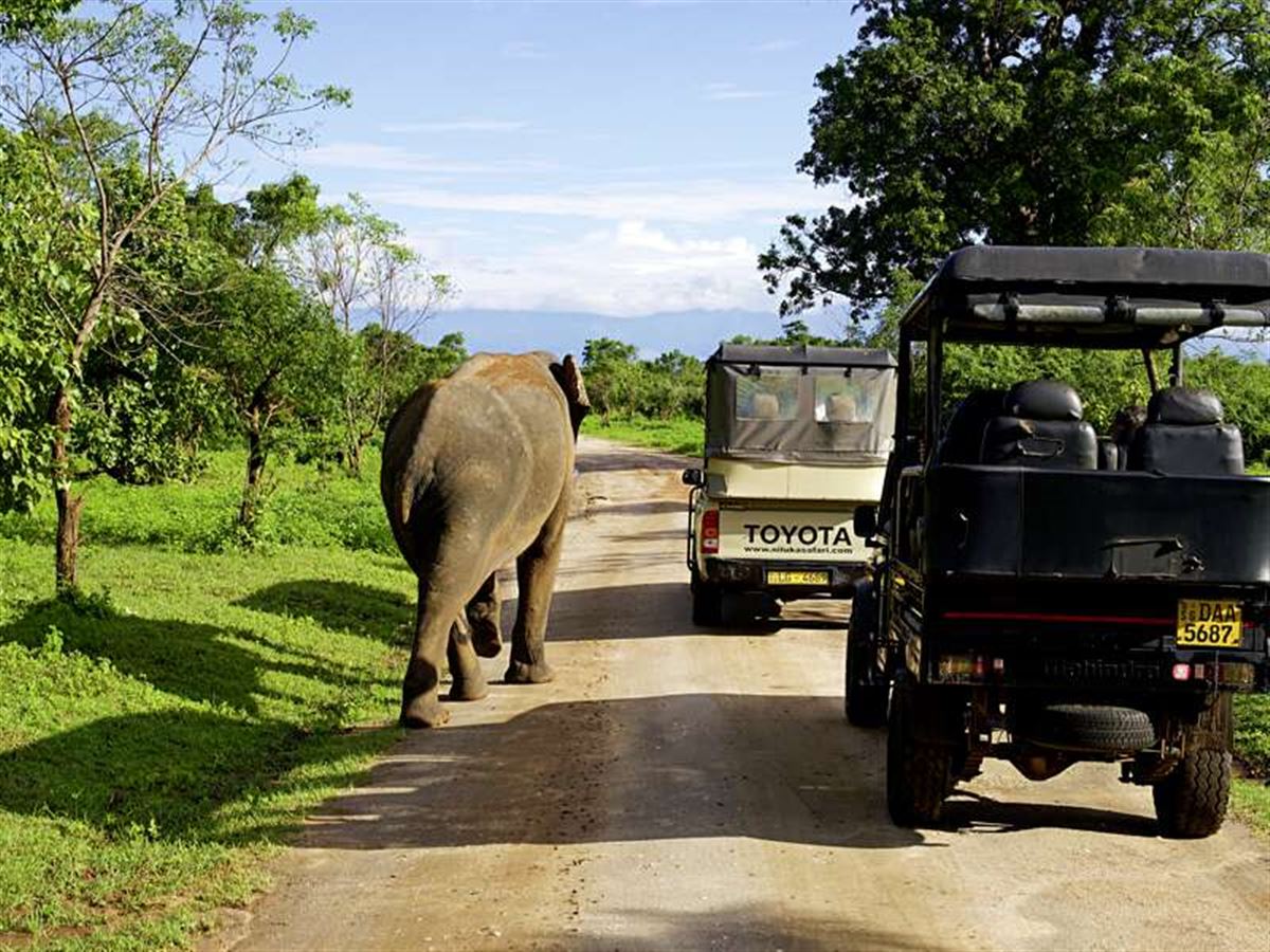 Zurück ins Tiefland. Vor dem Udawalawe-Nationalpark noch ein tierisch netter Hot Spot, dessen Name Programm ist: Elephant Transit Home. Mehrmals täglich wedelt hier eine wilde Horde junger Waisen mit den Rüsseln, bekommt Futter und soll fit für die Wildnis werden. Wie's da dann zugeht, erleben wir im Anschluss: Jeepsafari im Nationalpark! Aufregend!