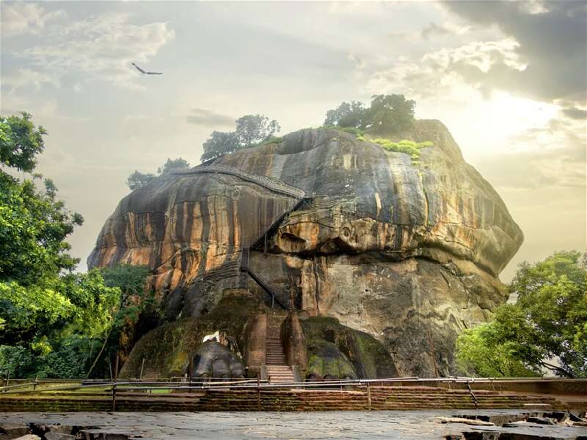 Im Landesinneren Sri Lankas erhebt sich der majestätische Löwenfelsen von Sigiriya, ein gewaltiger Monolith. Sein Name leitet sich vom singhalesischen "Singha Giri" ab und bedeutet "Löwenfelsen". Der 200 Meter hohe Magmablock eines erloschenen Vulkans ragt eindrucksvoll aus dem dichten Grün des Dschungels und zählt heute zu den bekanntesten Sehenswürdigkeiten Sri Lankas. Im 5. Jahrhundert ließ König Kassapa I. hier eine imposante Felsenfestung mit Palastanlage errichten, nachdem er seinen Vater Dhatusena gestürzt hatte. Aus Angst vor seinem Halbbruder Moggallana baute er Sigiriya zur Festung aus, doch 491 n. Chr. wurde er von diesem besiegt. Die Anlage verfiel später und wurde zu einem buddhistischen Kloster, das bis heute existiert. Besucher erwarten heute nicht nur faszinierende Ruinen, sondern auch prachtvolle Gärten und einen traumhaften Panoramablick über die umliegenden Ebenen. Zu den Höhepunkten gehören die weltberühmten Wolkenmädchen, das sind kunstvolle Fresken im Felsüberhang, die leuchtend farbige Frauen darstellen und zu den größten Schätzen singhalesischer Malerei zählen. Ebenfalls sehenswert sind die Spiegelwand, deren Putz zur Zeit des Königs auf Hochglanz poliert war, sowie das kleine Museum am Eingang der Anlage. Der Löwenfelsen Sigiriya gehört seit 1982 zum UNESCO-Weltkulturerbe und ist ein absolutes Highlight auf jeder Sri Lanka Rundreise. Wer den Aufstieg wagt, wird nicht nur mit Geschichte, Kunst und Kultur belohnt, sondern auch mit einem unvergesslichen Ausblick.