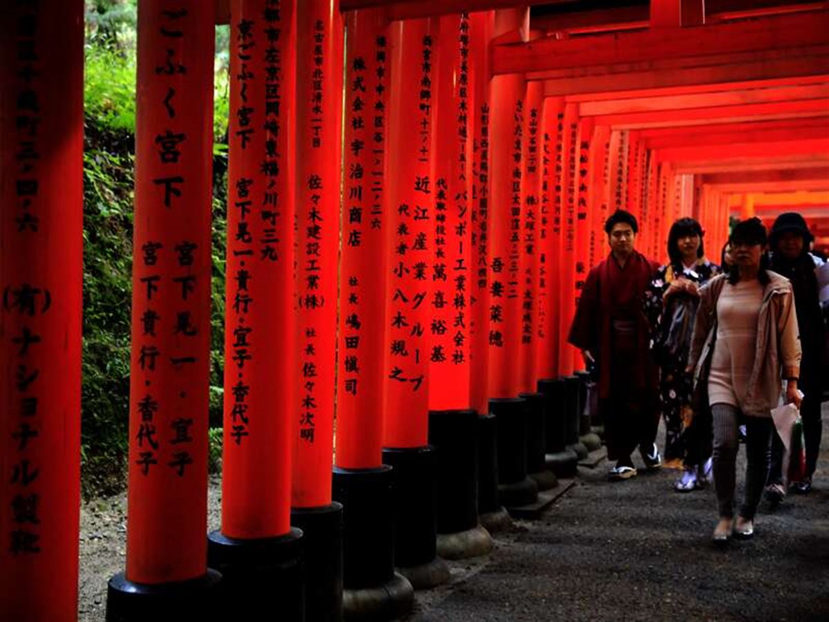 Citytour mit Trick 17: Ausnahmsweise sind wir im eigens angemieteten Bus unterwegs. So schlagen wir nicht nur den Besuchermengen ein Schnippchen, sondern lassen auch den Einheimischen ihre Plätze im Linienbus. Zum Dank erleben wir die historischen Highlights der Stadt ganz unkompliziert: all die besonderen Tempel, Schreine und Gärten. Ob wir den Goldenen Pavillon des Kinkaku-ji wohl im perfekten Sonnenlicht erwischen? Über alle Äußerlichkeiten erhaben dagegen empfängt uns der minimalistische Zen-Garten des Ryoan-ji. Am freien Nachmittag lohnt eine Fahrt zum Fushimi-Inari-Tempel: Seine endlose Allee von roten Torii wird mit zunehmendem Abendlicht zusehends schöner.