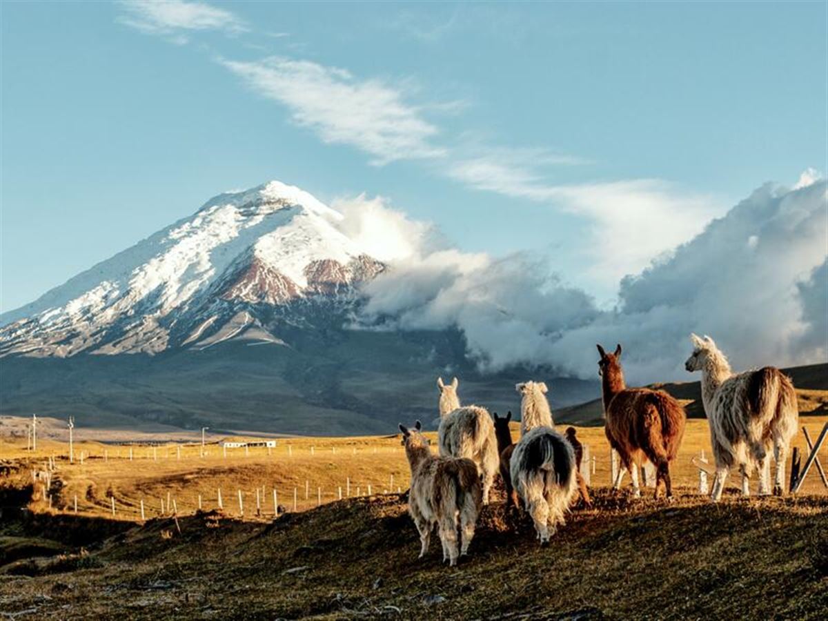 Auf der Straße der Vulkane zum Cotopaxi-Nationalpark. Außen Eis, innen heiß: Cotopaxi, der zweithöchste aktive Vulkan der Welt, schiebt hier seine schneeweiße Kuppe 5897 m in den Himmel. In seinem Schatten spazieren wir durch die Weiten der Páramo-Landschaft – die feuchtkalte Graslandzone ringsum – zur Lagune von Limpiopungo. Hier und da scharrt vielleicht ein Wildpferd oder grast ein Lama, und manchmal kreist einer der letzten Kondore majestätisch über der Steppe. Der Rest ist einsame Weite. Ein echter Seelenwärmer: die rustikale Mittagsküche auf einer Hazienda, bevor es wieder zurück nach Quito geht. Restaurantszene, Bargeschehen und Musikleben der Hauptstadt können Sie abends in Eigenregie entdecken.