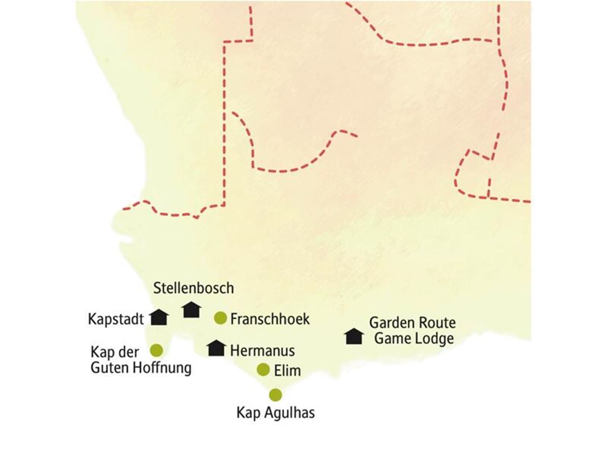 Heute gibt es echte Leckerbissen aus der Kapflora - zwischen Proteen und Yellowwood beim Besuch im berühmten Botanischen Garten von Kirstenbosch. Wir stärken uns mittags vor Ort und bewundern nachmittags im Herrenhaus von Groot Constantia stilvolles Mobiliar der Jahrhunderte und fotogene kapholländische Architektur.