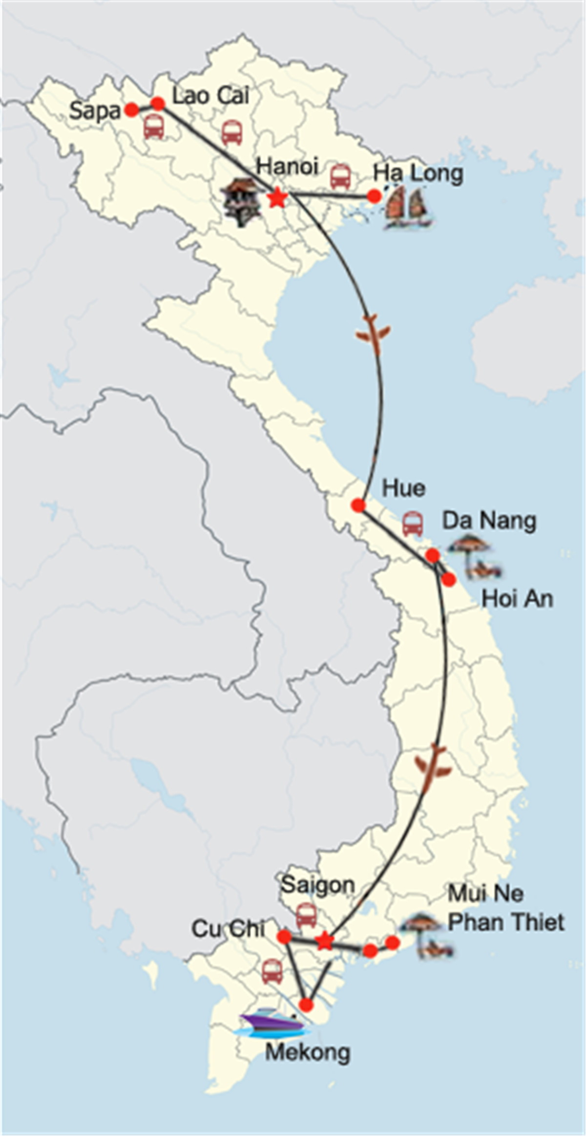 Heute ist Ihr Traumurlaub in Vietnam zu Ende. Sie checken Sie aus dem Hotel aus und werden zum Flughafen Saigon zurückgebracht, von dort erfolgt der Rückflug in die Heimat.