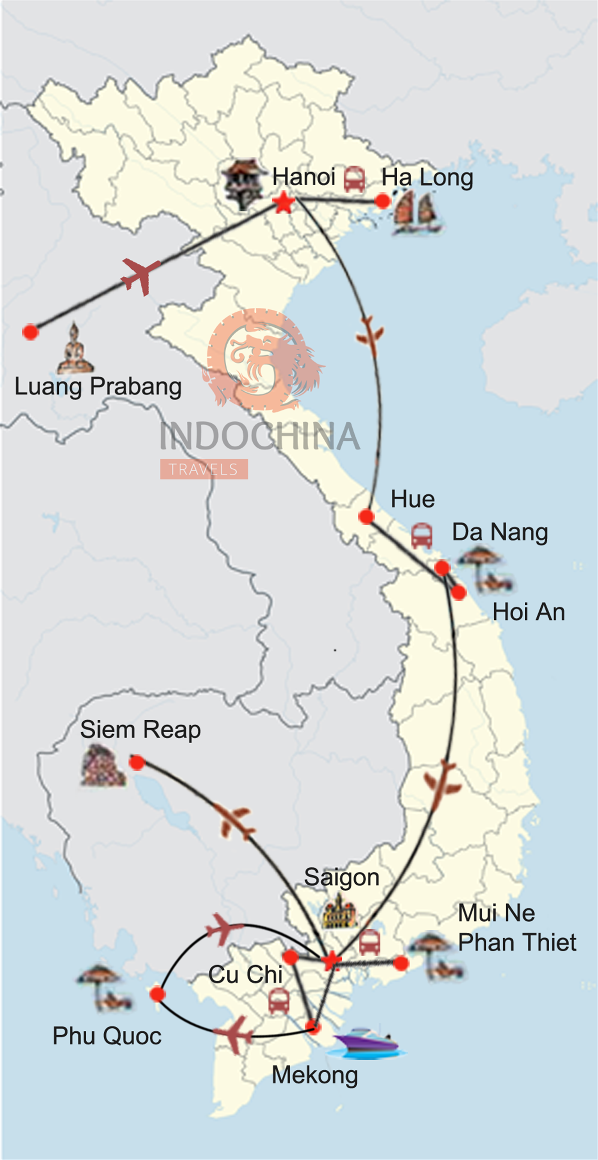 Heute lernen Sie die moderne Stadt Saigon während einer Stadtrundfahrt kennen. Saigon bietet zahlreiche Sehenswürdigkeiten wie das historische Zentrum, das Opernhaus und die Notre Dame-Kathedrale. Stadtrundfahrt in Saigon mit Besuch der Wiedervereinigungshalle, des zentralen Postamtes (ein architektonisches Meisterwerk), und des Ben Thanh Marktes.