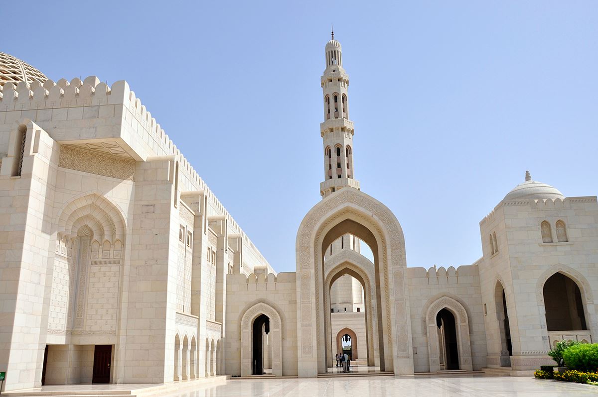 Die Große Moschee besticht durch wunderschöne Kunstwerke und Kronleuchter. Weiter geht es zum Royal Opera House. In den engen Gassen des Muttrah Souk herrscht eine mystische Atmosphäre. Im NHI (National Hospitality Institute) werden junge Leute für die Gastronomie ausgebildet. Ein omanisches Mittagsbuffet bietet die Gelegenheit, mit ihnen ins Gespräch zu kommen. Das Nationalmuseum wurde zur Bewahrung des reichen kulturellen Erbes gegründet. Schließlich gehen wir zum prächtigen Al-Alam-Palast, der Residenz des Sultans. Der Palast ist ein Wunderwerk. Im Hotel genießen wir unser letztes Abendessen. 50 km (F, M, A)