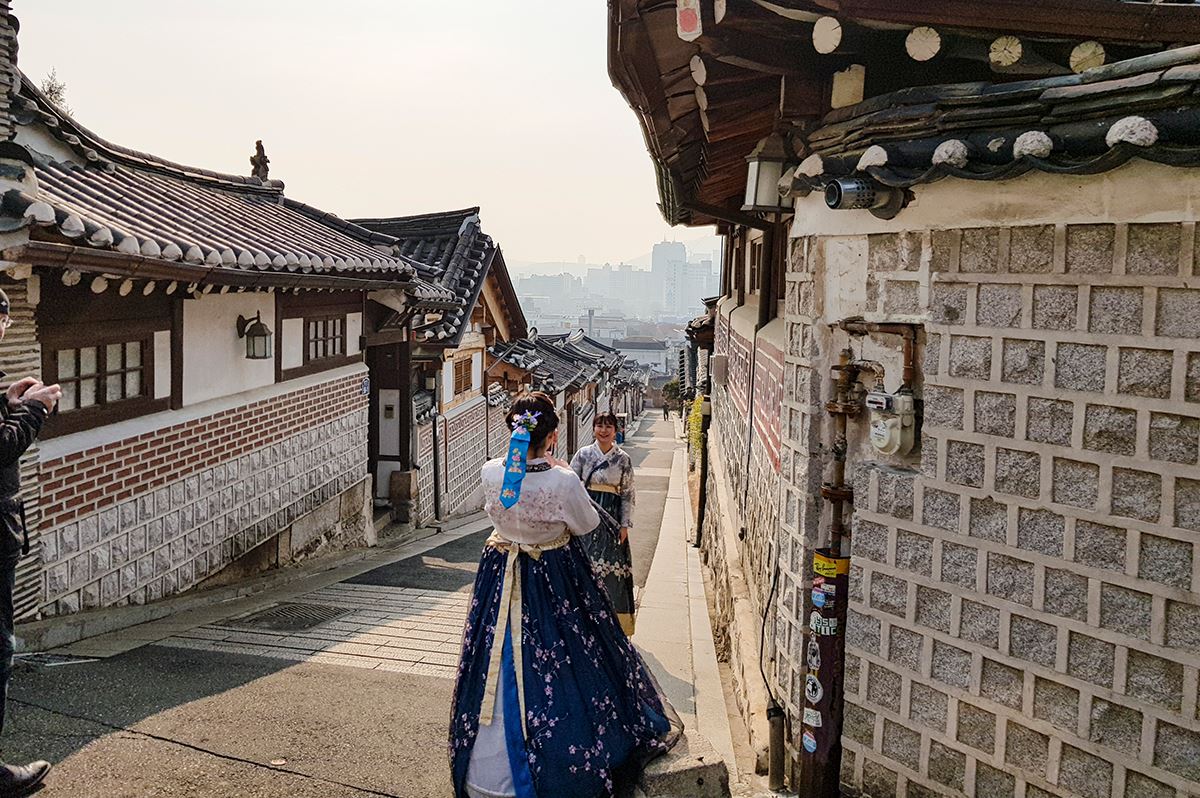 Mit der U-Bahn geht es zum Rathaus, von hier führt uns ein kurzer Spaziergang zum weitläufigen Gwanghwamun Square. Dieser Platz ist bekannt für seine Statuen von Admiral Yi Sun-sin und König Sejong dem Großen und bildet eine beeindruckende Achse vor dem Gyeongbokgung Palast. Durch das Gwanghwamun Tor betreten wir den »Palast der strahlenden Glückseligkeit«. Er ist nicht nur der erste, sondern auch der größte unter fünf Palästen, die während der Joseon Dynastie fertiggestellt wurden. Weiter geht es zum ehemaligen Präsidentenhaus, dem Blue House, das für seine blauen Ziegel bekannt ist und malerisch am Fuße des Berges Bugaksan liegt. Im Anschluss geht es mit der U-Bahn weiter in Insadong Viertel und zum Bukchon Hanok Village. Die vielen Kunstgalerien, Antiquitätenläden und Teehäuser laden zum Stöbern und Verweilen ein. Entlang des renaturierten Flusses Cheonggyecheon geht es zurück zum Hotel. Optional lockt am Abend eine Foodie Tour, bei der wir gemeinsam die köstlichsten Streetfood Highlights entdecken.