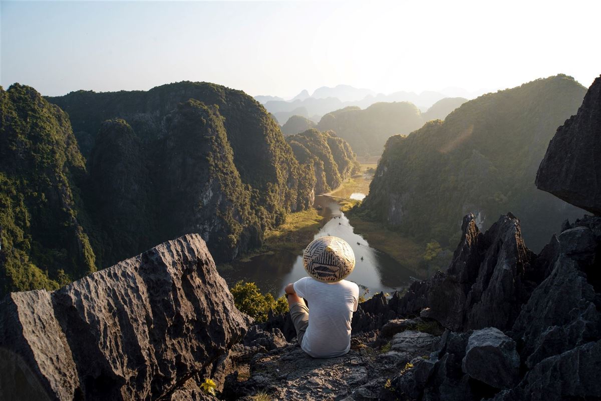 Es geht weiter in die Provinz Ninh Binh. Die trockene Halong-Bucht gibt uns schon einmal einen kleinen Vorgeschmack auf das, was uns beim Original erwartet! Wir schwingen uns aufs Rad, erkunden die Tempel der Kaiser Dinh Tien Hoang und Le Dai Hanh und überwinden den steilen Weg von der Bich Dong Pagode zur grünen Grotte. Hier bietet sich uns ein unvergleichlicher Blick auf das Meer von grünen Reisfeldern, aus denen die Zuckerhutberge wachsen. Im Vogelpark Thung Nham gleiten wir mit kleinen Sampans inmitten der wunderschönen Landschaft durchs Wasser und lauschen dem Konzert der 46 hier lebenden Vogelarten. 95 km
