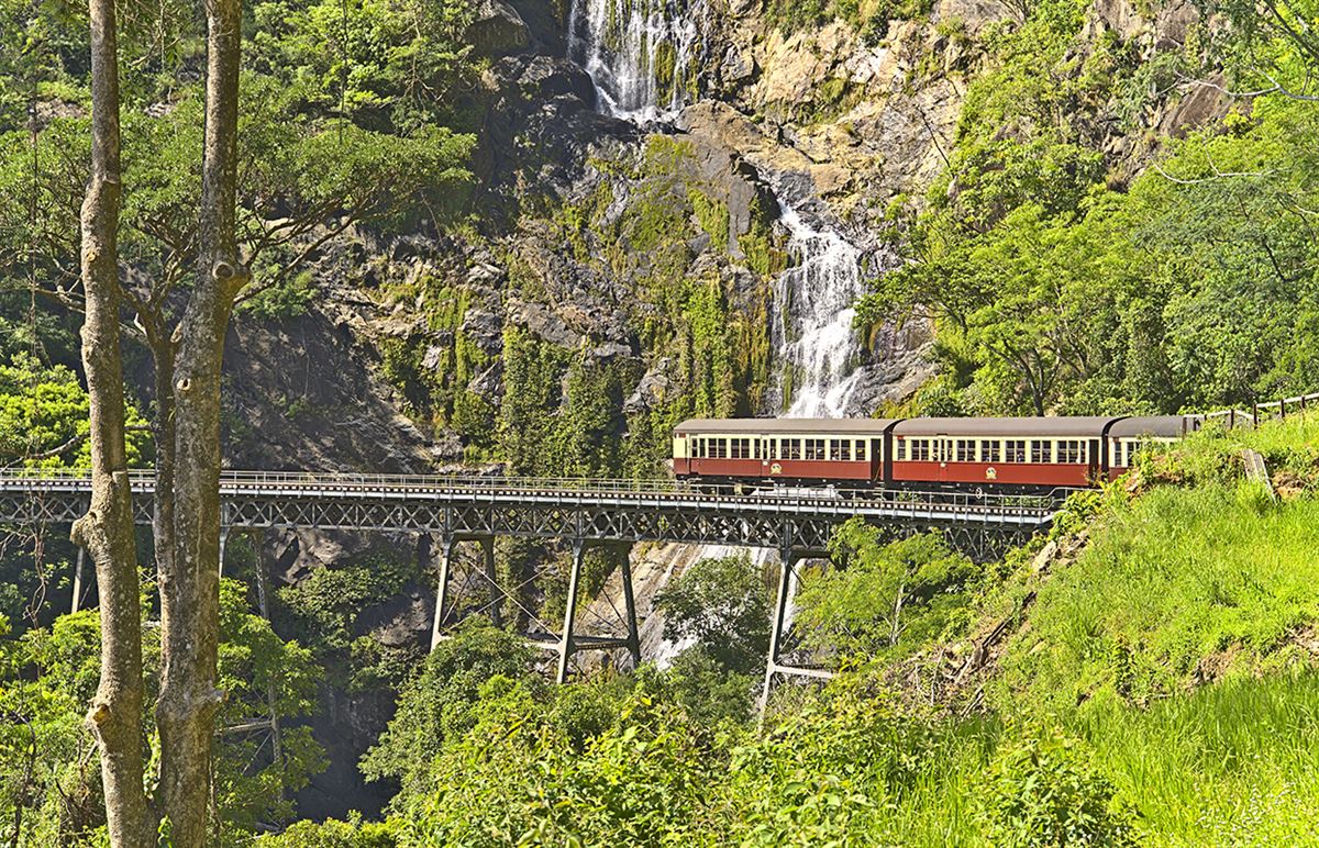 Wir fahren mit der 7,5 Kilometer langen Gondel über den Regenwald hinweg in das 380 Meter hoch gelegene Kuranda. Der Bahnhof von Kuranda ist beeindruckend. Nachdem Sie auf den lokalen Märkten des Ortes gestöbert haben, bringt Sie die historische Scenic Railway wieder zurück ins Tal. 20 km