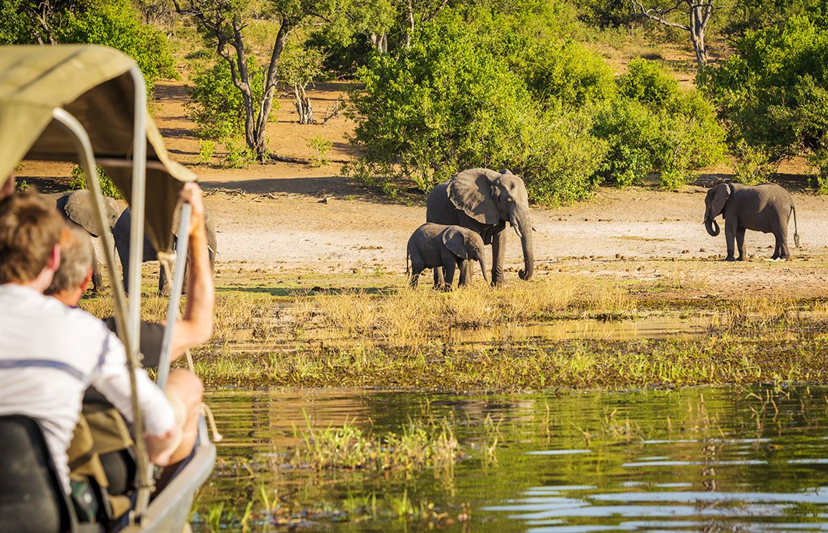 Am Morgen geht es auf Safari. Offene Fahrzeuge lassen uns die Tierwelt aus allernächster Nähe erleben. Der Chobe-Nationalpark ist mit 11.700 Quadratkilometern der zweitgrößte Nationalpark in Botswana. Er bietet eine der größten Wildkonzentrationen auf dem afrikanischen Kontinent. Er ist zudem berühmt für seine große Elefantenpopulation, die mehr als 50.000 beträgt. Am Nachmittag erleben wir die Tierwelt vom Boot aus. Ein einzigartiges Spektakel, wenn die Elefanten zum Baden an den Fluss kommen! (F, A)
