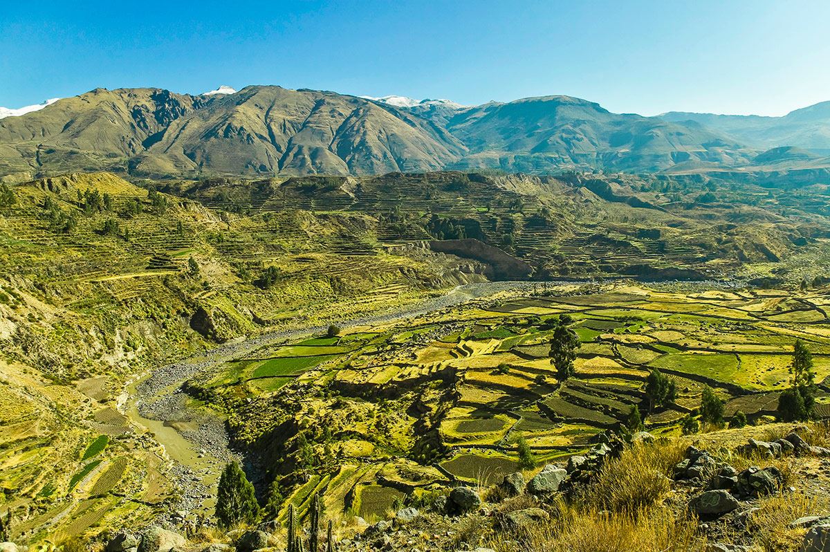 Früh am Morgen geht es durch eindrucksvolle Hochebenen in Richtung Colca-Tal. Mit ein wenig Glück sehen wir auch Vicuñas, die seltenste südamerikanische Kamelart. In Vizcachani machen wir einen kurzen Zwischenstopp, um einen Coca-Tee - das typische Getränk der Anden - zu probieren. Vom Aussichtspunkt El Mirador de los Andes haben wir eine fantastische Aussicht auf die schneebedeckten Gipfel des Chila-Massivs. 160 km