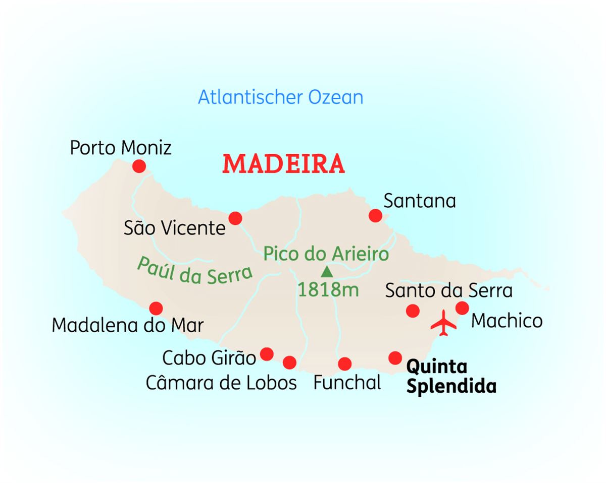 Heute bestimmen Sie das Tempo selbst. Genießen Sie die Annehmlichkeiten Ihrer Unterkunft oder erkunden Sie die Umgebung auf eigene Faust. Wer mehr sehen möchte, kann an einem Halbtagesausflug (optional, buchbar vor Ort) teilnehmen: Sie besuchen die prächtige Gartenanlage Quinta Vigia, den Sitz des Präsidenten von Madeira, und genießen von hier einen herrlichen Blick über Funchals Bucht. Weiter geht es zum Aussichtspunkt Pico dos Barcelos und durch einen duftenden Eukalyptuswald zum Eira do Serrado. Hier, hoch über dem „Nonnental“, eröffnet sich ein einzigartiger Blick auf das dramatische Bergpanorama. Unterwegs probieren Sie einen aromatischen Likör. (F)