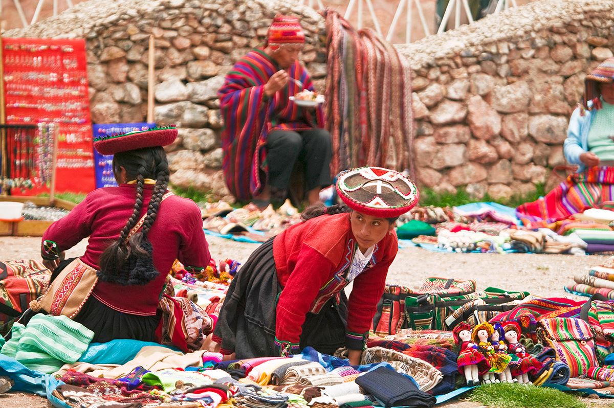 Die ländliche Gemeinde Huilloc ist ein kleines, ursprüngliches Bergdorf in der Provinz Urubamba, welches stolz auf das Leben und seine Kultur ist. Nach einem gemeinsamen Mittagessen in der Gemeinde machen wir uns auf den Weg zum berühmten Markt in Chinchero. Es werden Textilien, Schmuck sowie Obst und Gemüse angeboten, und es kann nach Herzenslust gestöbert werden. Danach erfahren wir allerhand Wissenswertes darüber, wie Wolle zu diesen kunstvollen Kleidungsstücken verarbeitet wird, die in Peru allgegenwärtig sind. Auf dem Rückweg nach Cuzco halten wir für eine Pisco-Verkostung, wo wir viel über das Nationalgetränk Perus erfahren. Schließlich erreichen wir Cuzco, die alte Hauptstadt der Inka. 70 km