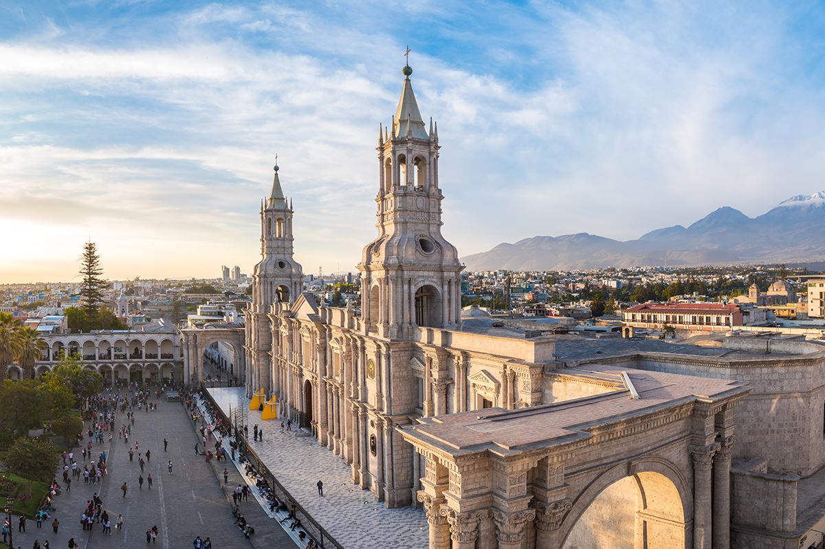 Morgens Flug nach Arequipa. Nachdem wir im Hotel angekommen sind, unternehmen wir einen leichten Spaziergang zur Höhenanpassung. Wir erkunden das Zentrum der »Weißen Stadt« mit der Kathedrale und dem berühmten Kloster Santa Catalina. Beim gemeinsamen Abendessen stimmen wir uns auf die kommenden Tage ein.
