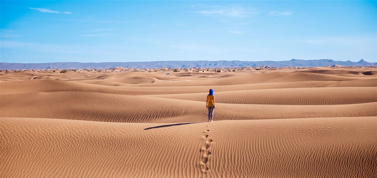 Heute führt Sie Ihre Reise durch das malerische Todra-Tal, wo Sie eine Wanderung durch Berberdörfer unternehmen und die beeindruckende Todra-Schlucht erleben (leicht, ca. 9 km, ca. 2 Std., +150/-50 Höhenmeter). Weiter geht es durch das Ziz-Tal nach Merzouga, am Rand der Sahara gelegen. Hier beziehen Sie Ihre Unterkunft und haben die Möglichkeit, einen Spaziergang durch die goldenen Sanddünen des Erg Chebbi zu unternehmen und einen spektakulären Sonnenuntergang zu erleben. 1 Nacht in Merzouga. (F/A)