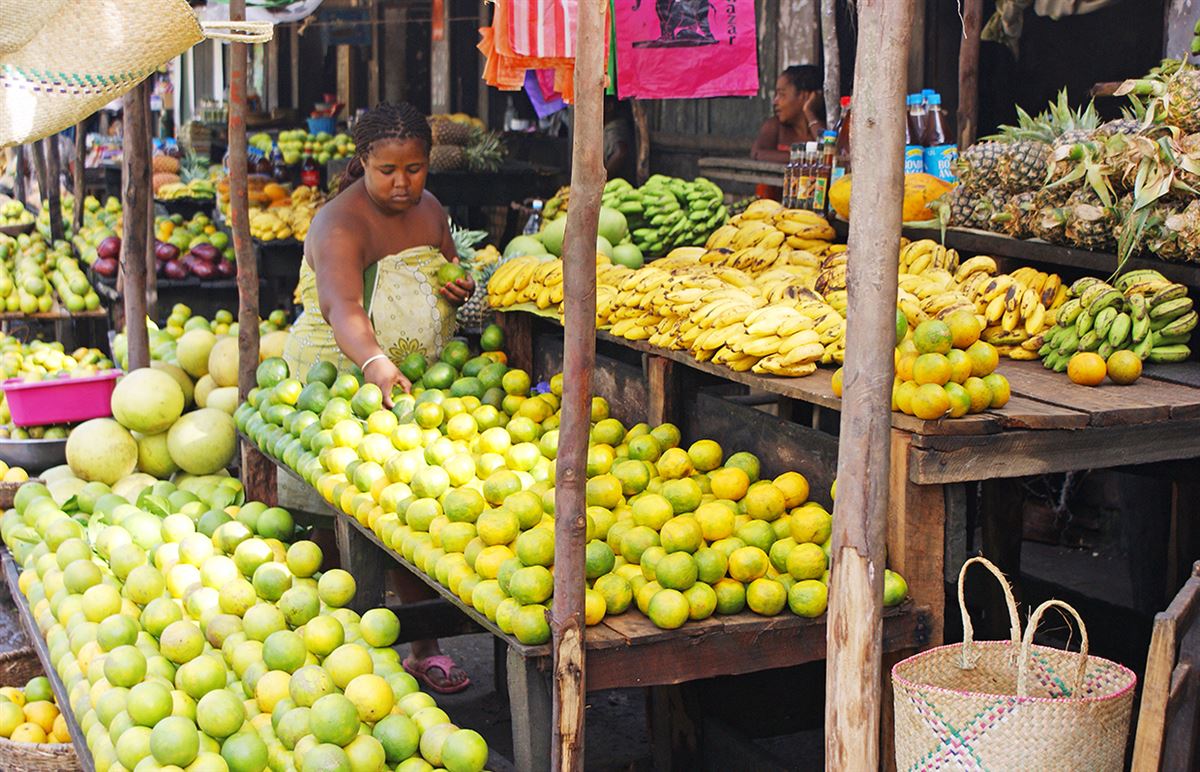 Auf der frühen Bootsfahrt durch die üppige Kanalvegetation zurück nach Manambato gelingt ein kurzer Blick auf den Alltag der Einheimischen in den Fischerdörfern. Auf der Rückfahrt in die Metropole halten wir an einem der vielen Gemüse- und Obststände der kleinen Siedlungen am Straßenrand und lassen uns die teils fremdartigen Sorten erklären. 300 km (F)