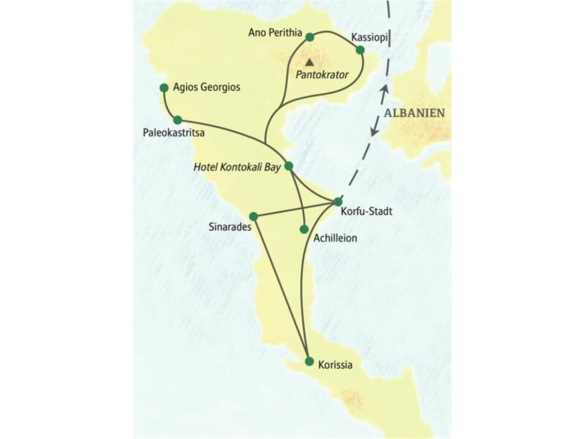 Heute geht es Richtung Norden. Zu Füßen des Berges Pantokrator liegt das Geisterdorf Ano Perithia. Warum haben die Bewohner es verlassen? Ihre Reiseleiterin kennt die Antwort. Wir fahren die Küstenstraße entlang nach Kassiopi und genießen das Flair dieser hübschen Hafenstadt im Nordosten Korfus. Den Abend lassen wir gemeinsam in einer Taverne ausklingen.