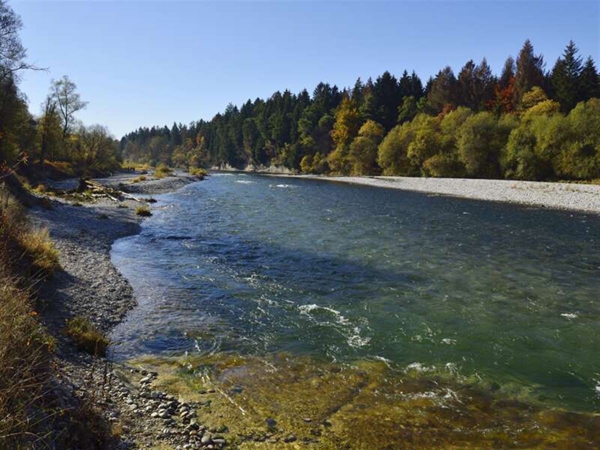 Nach dem Frühstück wandern wir auf der Westseite der Isar weiter und hinein in völlig unberührte Wildflusslandschaften aus Kiesbänken, Weichholzauen und artenreichen Trockengebieten, wo wir mit etwas Glück zahlreiche Wasservögel beobachten können, die im Naturschutzgebiet Ickinger Stausee brüten. Am Ickinger Wehr wechseln wir die Isarseite und haben erneut Gelegenheit Flöße bei der Durchfahrt durch die Floßgasse zu sehen. Anschließend geht es dann hinein in das Naturschutzgebiet Pupplinger Au, wo sich im Bereich des Loisach-Zuflusses die einzigartige Flussdynamik der Isar zeigt. Völlig unverbaut darf sie sich in viele Arme aufteilen und durch ihr weites Kiesbett mäandrieren. Gegen Mittag erreichen wir die Isarbrücke bei Wolfratshausen und kehren in einem der naheliegenden Gasthöfe zum Mittagessen ein. Anschließend bleiben wir auf der Westseite des Flusses und wandern weiter Richtung Geretsried, wo sich einige der schönsten Flussabschnitte der Isar befinden. Am späten Nachmittag erreichen wir schließlich unsere Pension in Geretsried, dem größten Ort an der Isar südlich von München.