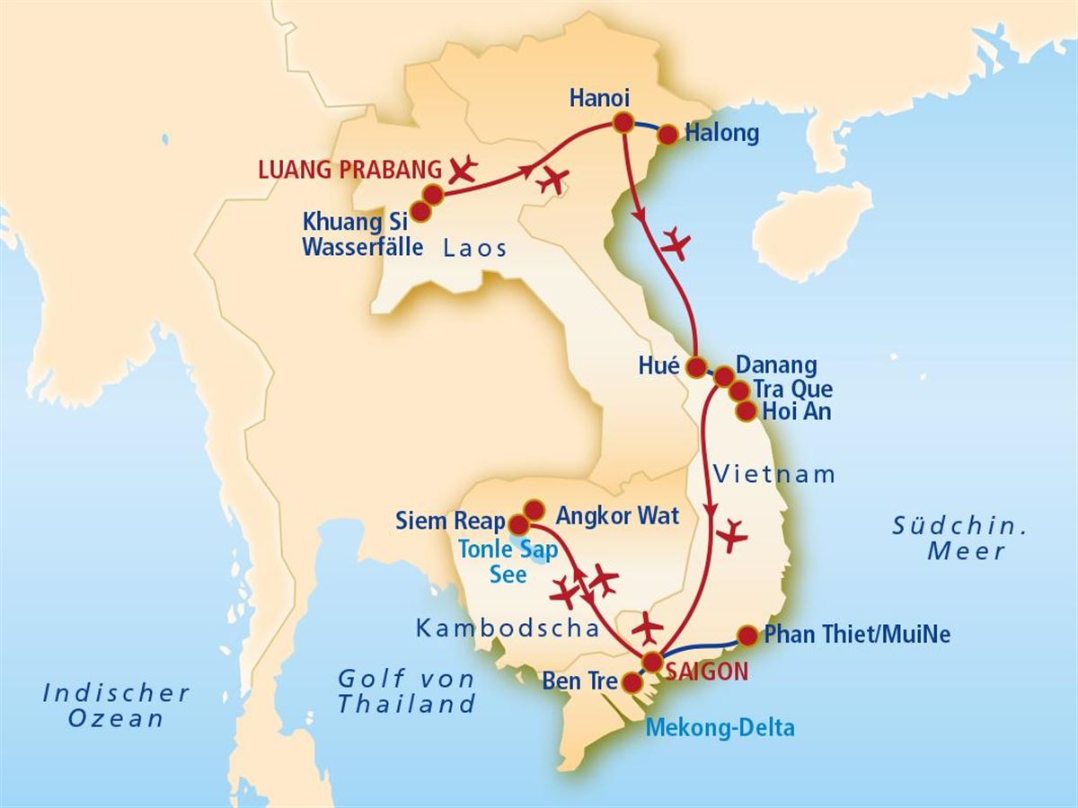 Linienflug von Frankfurt nach Luang Prabang, wo Sie am nächsten Morgen ankommen.