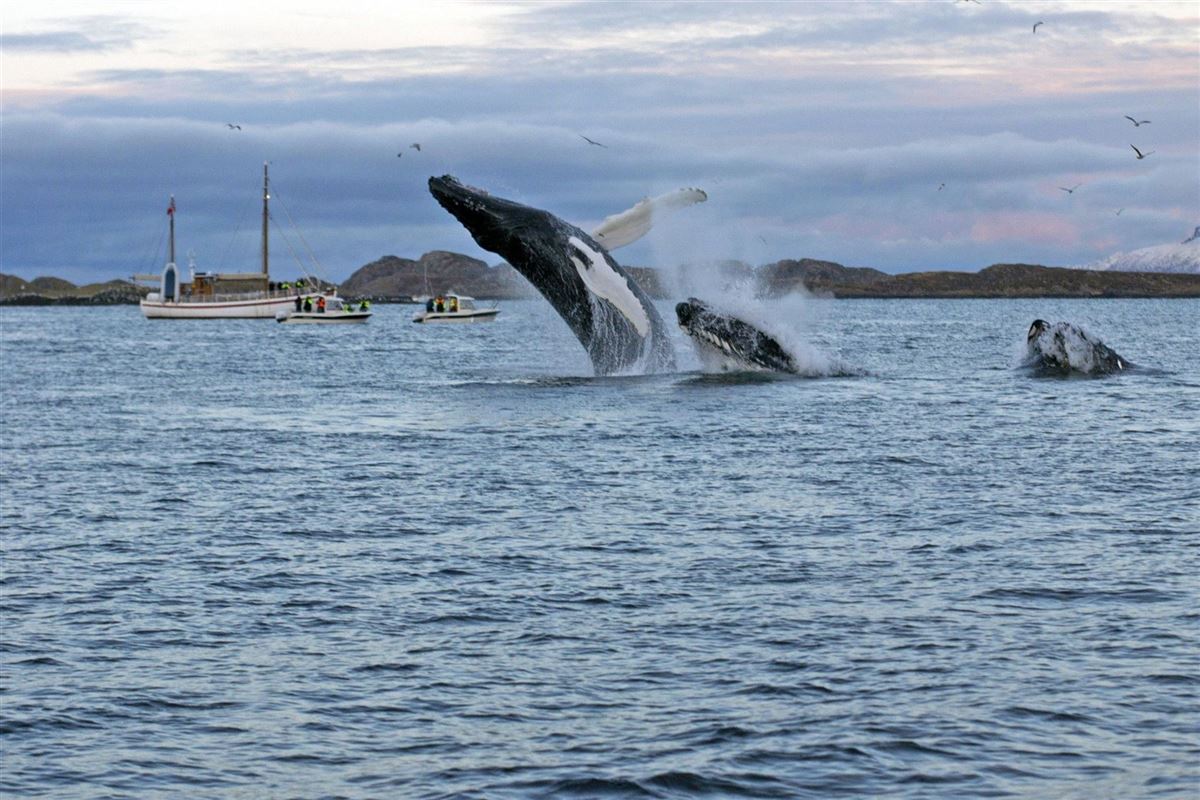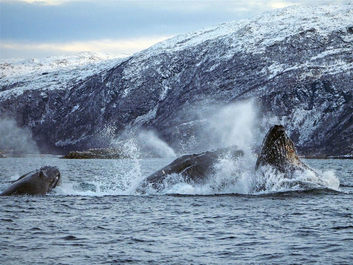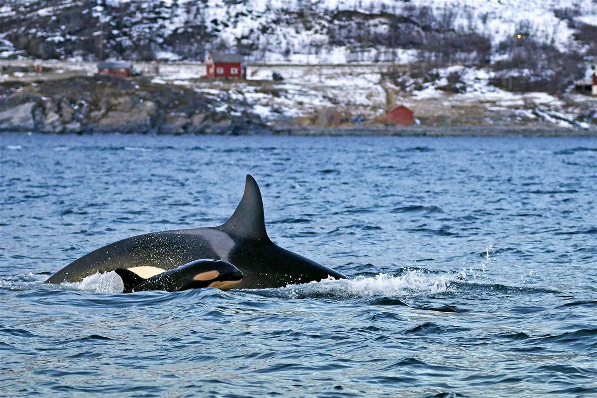 Ausgerüstet mit Überlebensanzügen fahren Sie aufs Meer (je nach Bootstyp max. 8-12 Gäste pro Boot). Die erfahrenen Skipper wissen, wie sie sich den Walen respektvoll nähern und bringen das Boot in Position, um Ihnen die besten Beobachtungs- und Fotomöglichkeiten zu bieten. Sollte keine Wale zu sehen sein, kann geangelt werden oder es werden Rundfahrten in den Fjorden unternommen. Sie nutzen die Zeit im Tageslicht (je nach Reisetermin ca. 3-5 Stunden) draußen auf dem Meer und kehren ca. 13-14 Uhr zurück. Der Nachmittag steht zur freien Verfügung zum Entspannen, Spazieren und um Ausschau nach Nordlichtern zu halten.