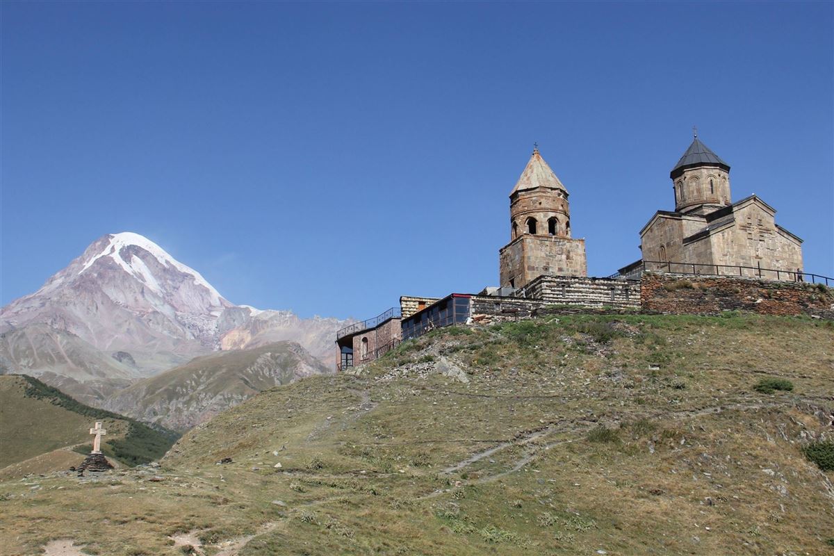 Den ganzen Tag haben Sie Zeit zur Erkundung dieses herrlichen Tales am Kasbek. Zunächst geht es hinauf zur Dreifaltigkeitskirche „Zminda Zameba“ aus dem 14. Jh. (optional per Fahrzeug). Von der Kirche auf immerhin 2180 m hat man den vielleicht besten Blick hinüber zum Prometheusberg Kasbek (5047 m). Besonders im Morgen- oder Abendlicht bieten sich viele tolle Fotomotive in großartiger Kulisse an. Am Nachmittag unternehmen Sie eine Wanderung zu den Wasserfällen von Gweleti.