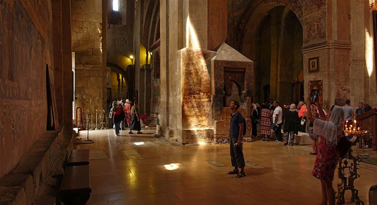Zunächst Fahrt zurück nach Kachetien. Im Alasani-Tal besuchen Sie noch die berühmte Alawerdi-Kathedrale, die in der Ebene schon von weithin zu erspähen ist. Sie gilt als drittgrößter Kirchenbau in ganz Georgien. Mittagspause in Telavi bei einer kachetischen Familie. Weiterfahrt nach Tiflis. Abends Freizeit.