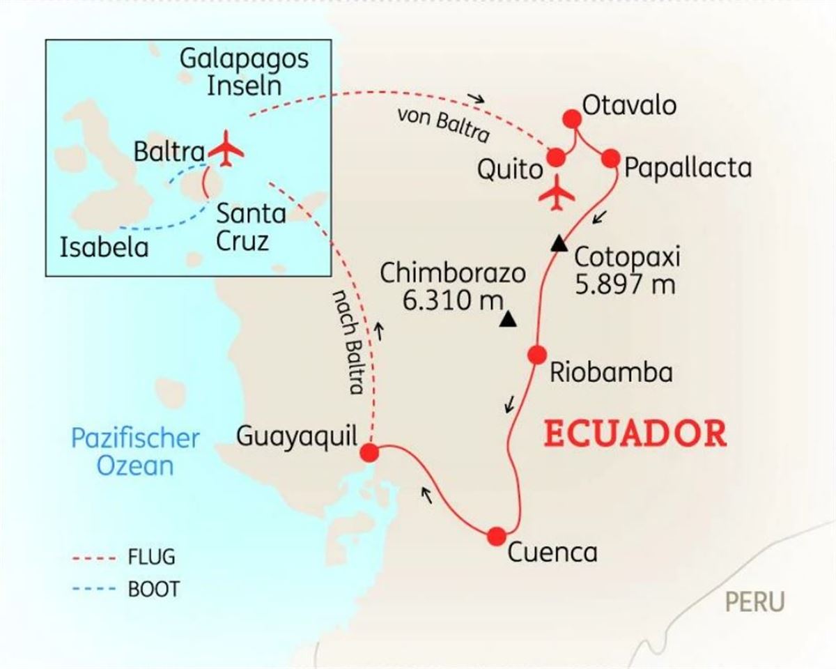 Sie fliegen zurück nach Quito und von dort aus weiter in Richtung Heimat. (F)