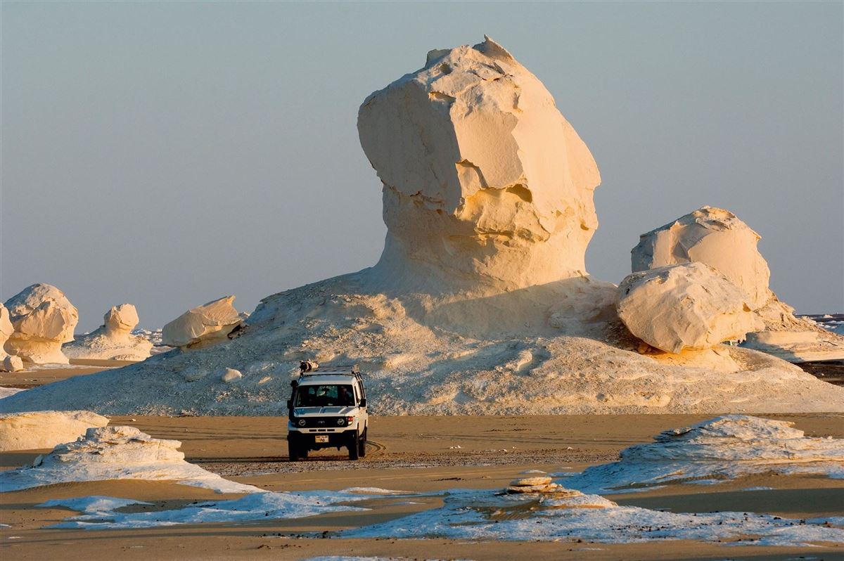 Heute fahren Sie in die Weiße Wüste und erkunden auf einer moderaten Wanderung eine surreal Welt von Kalksteinformationen, entstanden aus den uralten Muschelablagerungen am Grund eines Urmeeres und dem ewigen Nagen von Wetter und Sandstürmen. Schweifen Sie umher, gehen Sie mit den Augen auf Entdeckung und lassen Sie sich von den blendend weißen Felsfiguren ins Träumen versetzen. Am Abend erreichen Sie wieder Ihr Wüstencamp und erleben eine weitere unvergessliche Nacht unter dem Sternenzelt.