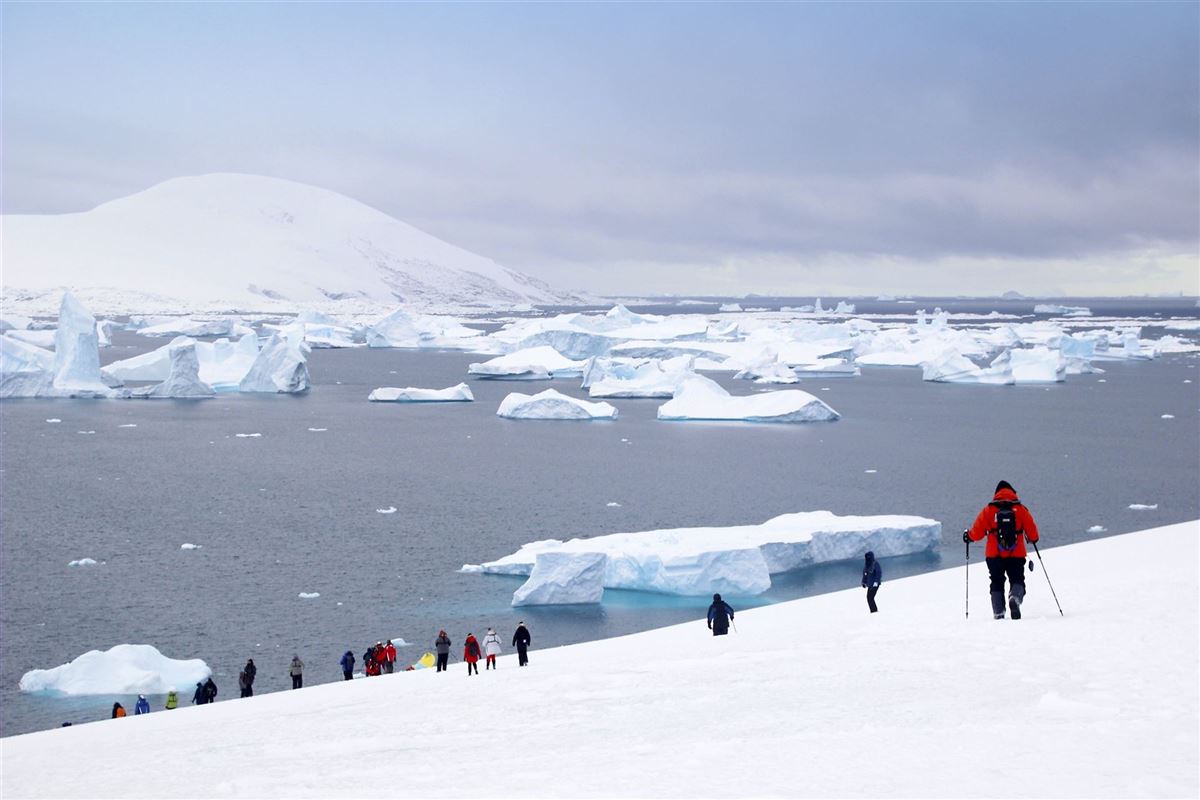 Ein weiterer Tag auf See, während Sie Kurs auf die Antarktische Halbinsel nehmen. Es kommen die ersten großen Eisberge in Sicht und die Chancen sind gut, Finnwale zu beobachten.