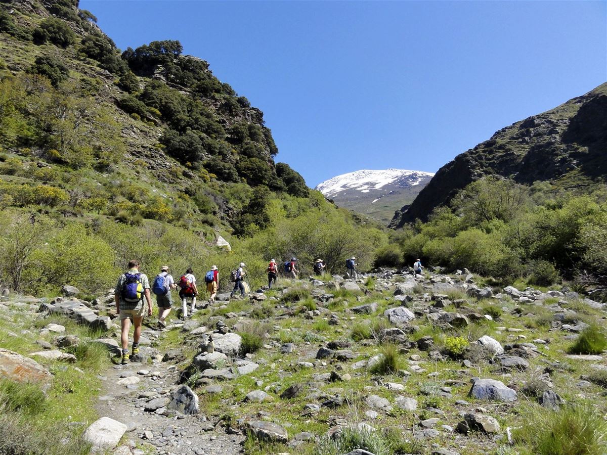 Das Erbe der Mauren ist in Andalusien bis heute sichtbar. Dazu gehören auch ausgeklügelte Bewässerungsanlagen in den Bergen. Sie unternehmen eine Rundwanderung zum oberen Wasserkanal (acequia alta) bis auf ca. 2000 m. Vor Ihnen entfaltet sich das Panorama der Gipfelgruppe der Sierra Nevada, umrahmt von unberührter Natur mit rauschenden Gebirgsbächen. Auf alten Schäferpfaden und Forstwegen wandern Sie zurück nach Capileira. Optional (Mai bis Oktober) besteigen Sie bei gutem Wetter mit einem lokalen Bergführer den Mulhacén (3482 m), den höchsten Gipfel der Iberischen Halbinsel. (Anmeldung erfolgt bei Reisebuchung; inkl. lokalem Bergführer und Transfers; Kosten variieren je nach gebuchter Personenzahl).