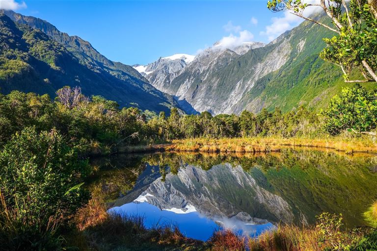 Heute geht es von Wanaka zur Westküste. Die Landschaft fasziniert durch Regenwälder und glasklare Seen. Über den Haast-Pass fahren Sie zu den größten Gletschern in Neuseeland. Optional können Sie an einem Helikopter-Flug über den Fox-Gletscher teilnehmen (optional, wetterabhängig, buchbar vor Ort, ca. 300 NZD p.P.). 1 Nacht in Fox/Franz Josef. (F)