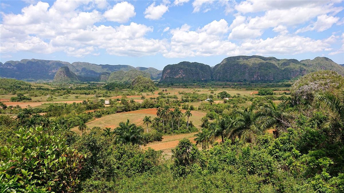 Am frühen Morgen starten Sie auf der Tabakroute in das prachtvolle Viñales-Tal. Nach einem Besuch im größten Orchideengarten Kubas, Soroa, geht es weiter zum Aussichtspunkt Castillo de las Nubes. Lassen Sie sich hier bei einem Cocktail vom atemberaubenden Blick über die Tabakfelder hin zu den berühmten Kalksteinfelsen Mogotes bezaubern. Sie fahren hinunter ins Tal und besuchen eine gigantisch große Felsmalerei, die die Entstehungsgeschichte der Menschheit darstellt. Bei einem letzten Stopp durchqueren Sie zu Fuß und per Boot die Tropfsteinhöhle Cueva del Indio, an deren Wänden es allerlei Markantes zu entdecken gibt.