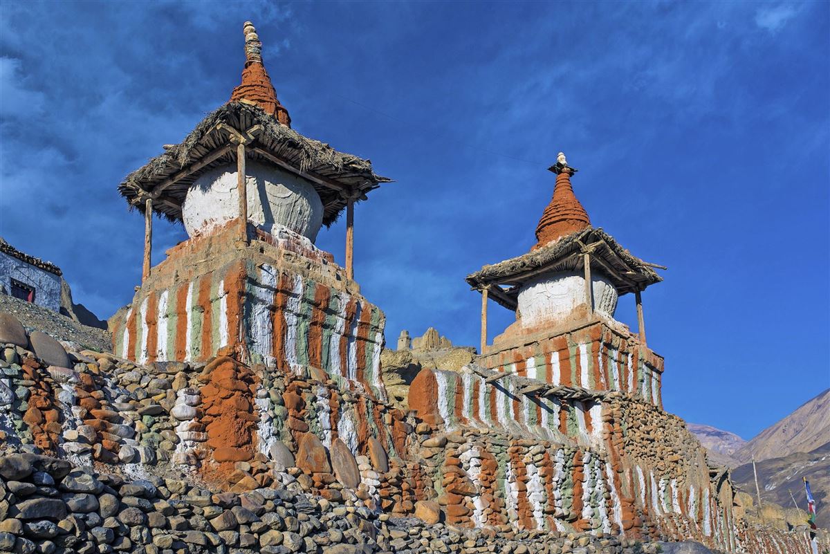 Nach einem gemütlichen Vormittag mit Ortserkundung fahren Sie mit dem Geländewagen durch den meist windigen und trockenen Talabschnitt des Kali Gandaki und folgen danach dem Bachbett zu Fuß bis nach Lupra. Der wunderschöne kleine Ort hat eine sehr sehenswerte Gompa. Schlendern Sie durch die Gassen des Dorfes und lassen die Atmosphäre auf sich wirken.
