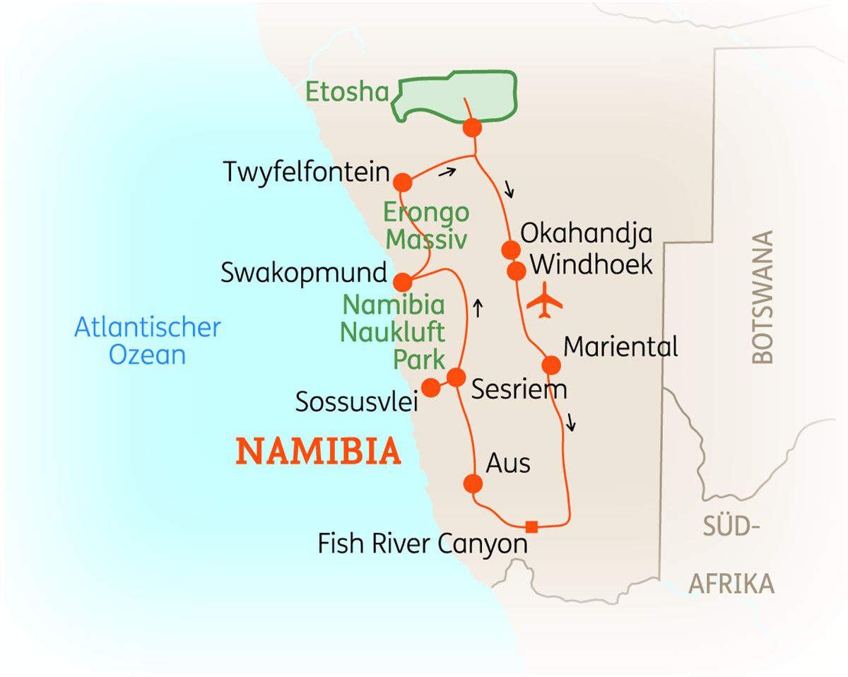 Sie fliegen nach Windhoek.