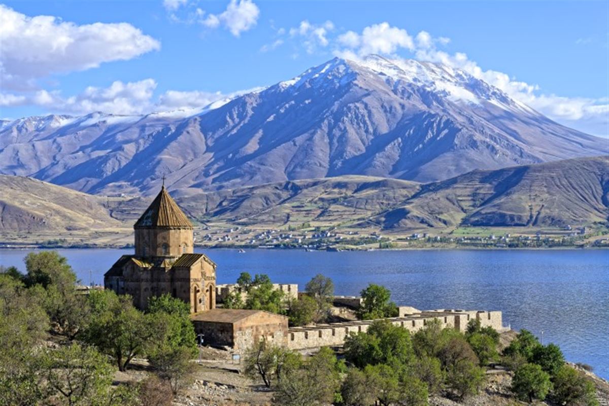 Sie verlassen das Zentrum von Van und fahren zunächst zu den Überresten der Van Burg. Diese Festung galt einst als uneinnehmbar und bildet heute ein Ruinenfeld. Vom Burgplateau haben Sie einen traumhaften Blick über die Stadt und über den See, der bei dustigem Wetter eher einem Meer gleicht. Weiterfahrt entlang des Vansees nach Tatvan. Auf dem Weg halten Sie in dem kleinen Ort Gevas und setzen mit einer Fähre zur Insel Akdamar über. Sie besichtigen die Akdamar-Kirche, welche aus dem 10. Jahrhundert stammt und auch als Kathedrale des Heiligen Kreuzes bekannt ist. Sie erreichen Tatvan am Nachmittag. Tatvan hat in seinem Stadtwappen eine Fähre dargestellt. Von Zeit zu Zeit verbindet eine Eisenbahnfähre Tatvan und Van. Einst wurde der Orientexpress über den Vansee transportiert, um seine Reise auf der anderen Seite fortzusetzen. Übernachtung im Hotel. (Fahrzeit ca. 1-2h, 140 km).