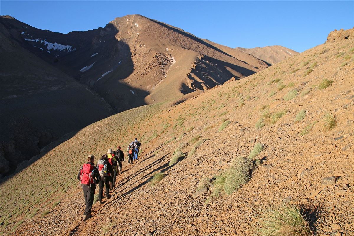 Früh am Morgen beginnen Sie mit dem langen Aufstieg zum Tarkkedit-Pass (3.450 m). Von hier bietet sich ein spektakulärer Blick auf den Aghouri und den Ighil M'Goun. Nachdem Sie das Panorama ausgiebig genossen haben, führt Sie der Weg hinab zum Tarkkedit-Plateau (2.930 m), wo Sie Ihr Nachtlager in der Nähe der Tassaoute-Quellen aufschlagen. Der Nachmittag dient der Akklimatisierung und steht Ihnen zur freien Verfügung.
