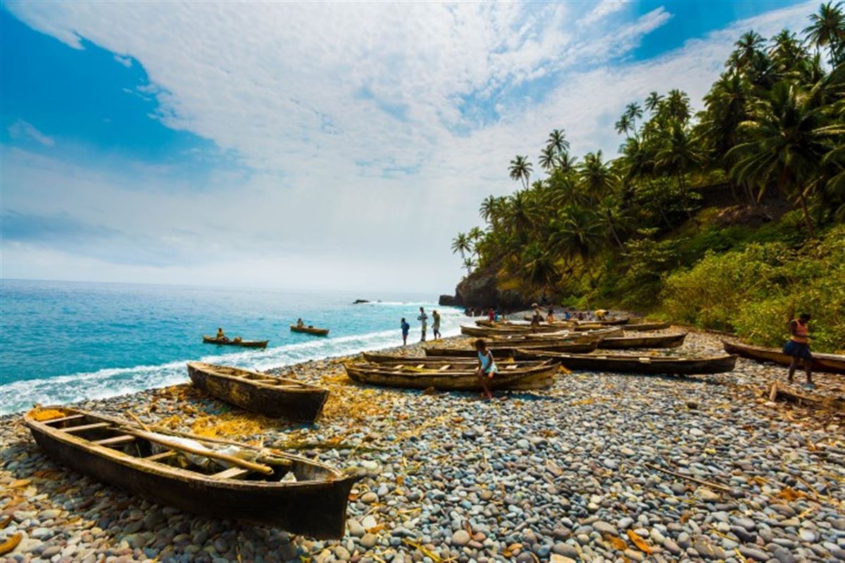 Heute erkunden Sie die Region São João dos Angolares, die Hauptstadt des Distrikts Caué, einer Fischerregion mit traditionell eigener Identität. Von der Roça São João aus fahren Sie durch die Kakaoplantagen zu den Roças Soledade und Fraternidade, die auf Hügeln liegen und einen herrlichen Blick auf die Südregion und den Basaltmonolithen Pico Cão Grande bieten. Ihr Ausflug endet am unverwechselbaren Strand von São Pedro, der mit seinem schwarzen Sand zwischen Fluss und Meer liegt. Hier bieten üppige Kokospalmenhaine einen natürlichen Schutz für Fischerboote. Noch ein Tipp für diesen schönen Tag: Vogelbeobachter sollten ihr Fernglas nicht vergessen.