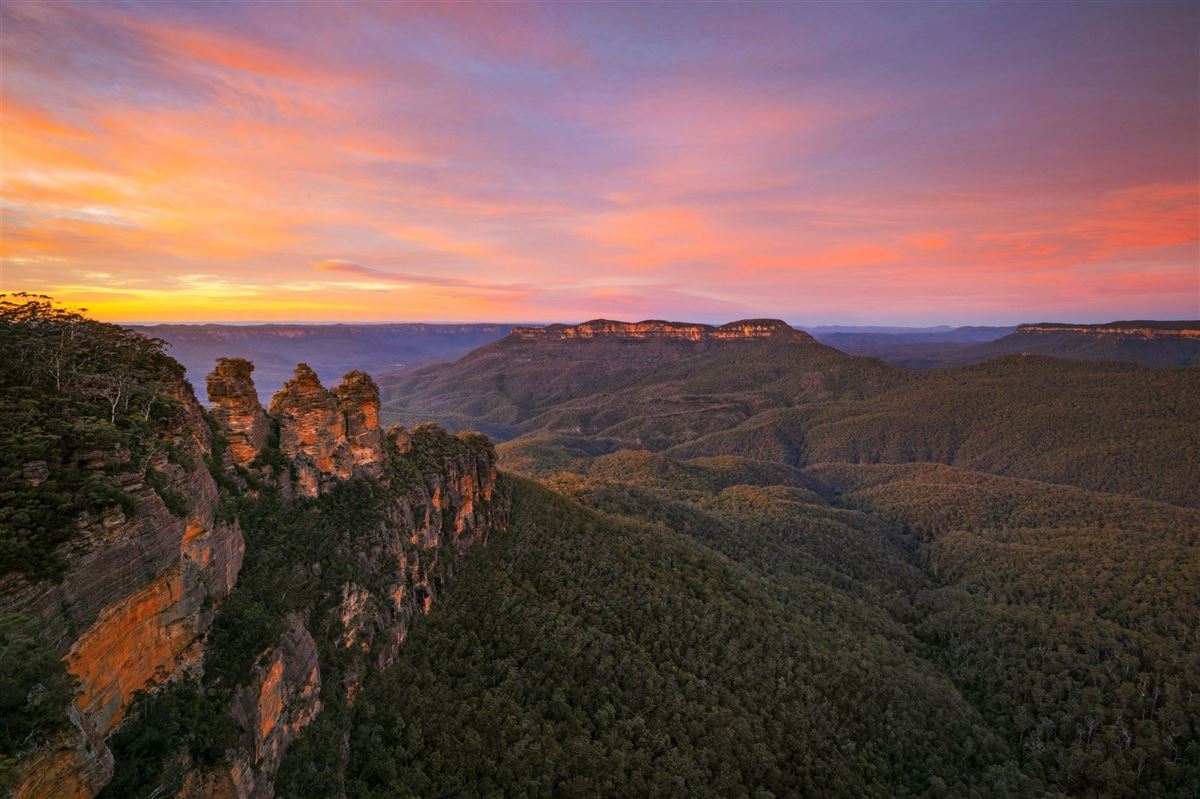 Die Blue Mountains verdanken ihren Namen dem feinen, bläulichen Dunst der ätherischen Öle, den die Eukalyptusbäume in die Luft abgeben – ein magischer Anblick über dem endlosen Gebirgszug. Auf Ihrer Erkundungstour erwarten Sie spektakuläre Naturschönheiten: die beeindruckenden Wentworth-Wasserfälle, die sich in Kaskaden in die Tiefe stürzen, und die berühmte Felsformation der Three Sisters, die majestätisch über dem Tal thronen. Ein Besuch im Aboriginal-Kulturzentrum bietet spannende Einblicke in die Traditionen der Ureinwohner, bevor Sie vom Aussichtspunkt Govetts Leap noch einmal den atemberaubenden Blick auf die zerklüftete Landschaft genießen. Nach einer Wanderung durch die unberührte Natur geht es zurück nach Sydney.
