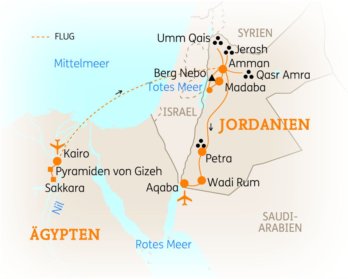 Nach dem Frühstück fliegen Sie heute in die jordanische Hauptstadt Amman und machen sich dort bereit für den zweiten Teil Ihres Abenteuers. 4 Nächte in Amman. (F/A)