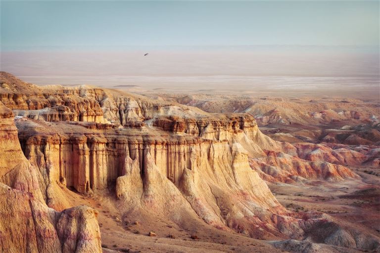 Nach dem Frühstück in der Gästeunterkunft geht es mit Lunchpaketen zu den Aktau-Weißen Bergen im Altyn-Emel-Nationalpark. Die rund 400 Millionen Jahre alten Kreideberge beeindrucken mit ihren hellen, teils weiß schimmernden Hängen, die je nach Lichteinfall in Blau-, Rosa-, Rot- und Grüntönen leuchten. Bei einer leichten Wanderung erreichen die Gäste einen Aussichtspunkt mit spektakulärem Panorama.Unterwegs erfolgt ein weiterer Stopp bei den Katutau-Lavabergen, wo ebenfalls eine kurze Wanderung durch die außergewöhnliche Vulkanlandschaft unternommen wird. Anschließend Rückfahrt zur Unterkunft, gemeinsames hausgemachtes Abendessen.