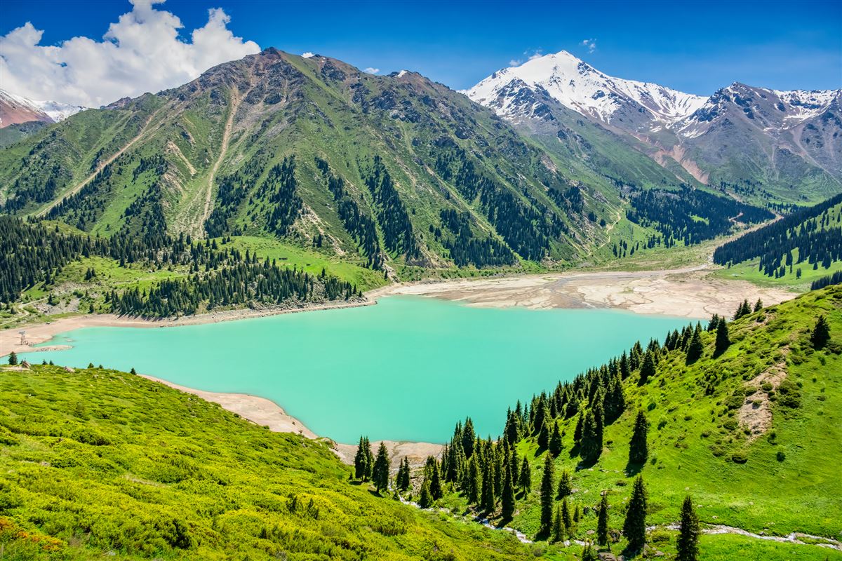 Nach dem Frühstück und dem Check-out geht es zum Kaindy-Bergsee. Der Name „Kaindy“ bedeutet „Birkenwald“, und die im Wasser stehenden Baumstämme verleihen dem See sein einzigartiges, mystisches Erscheinungsbild. Bei einer leichten Bergwanderung genießen die Gäste eindrucksvolle Ausblicke auf die Schlucht des Kungey-Alatau-Gebirges. Optional gegen Aufpreis besteht die Möglichkeit zu einem geführten Ausritt zum Kaindy-See. Anschließend Weiterfahrt zum ersten der Kolsay-Bergseen, die als „Perlen des nördlichen Tien Shan“ bekannt sind. Bei einem Spaziergang entlang des Ufers genießen die Gäste die beeindruckende Naturkulisse. Optional gegen Aufpreis kann in einem Ethno-Café mit Seeblick zu Mittag gegessen oder eine Bootsfahrt auf dem Kolsay-See unternommen werden. Am Ende des Tages Rückfahrt nach Almaty.