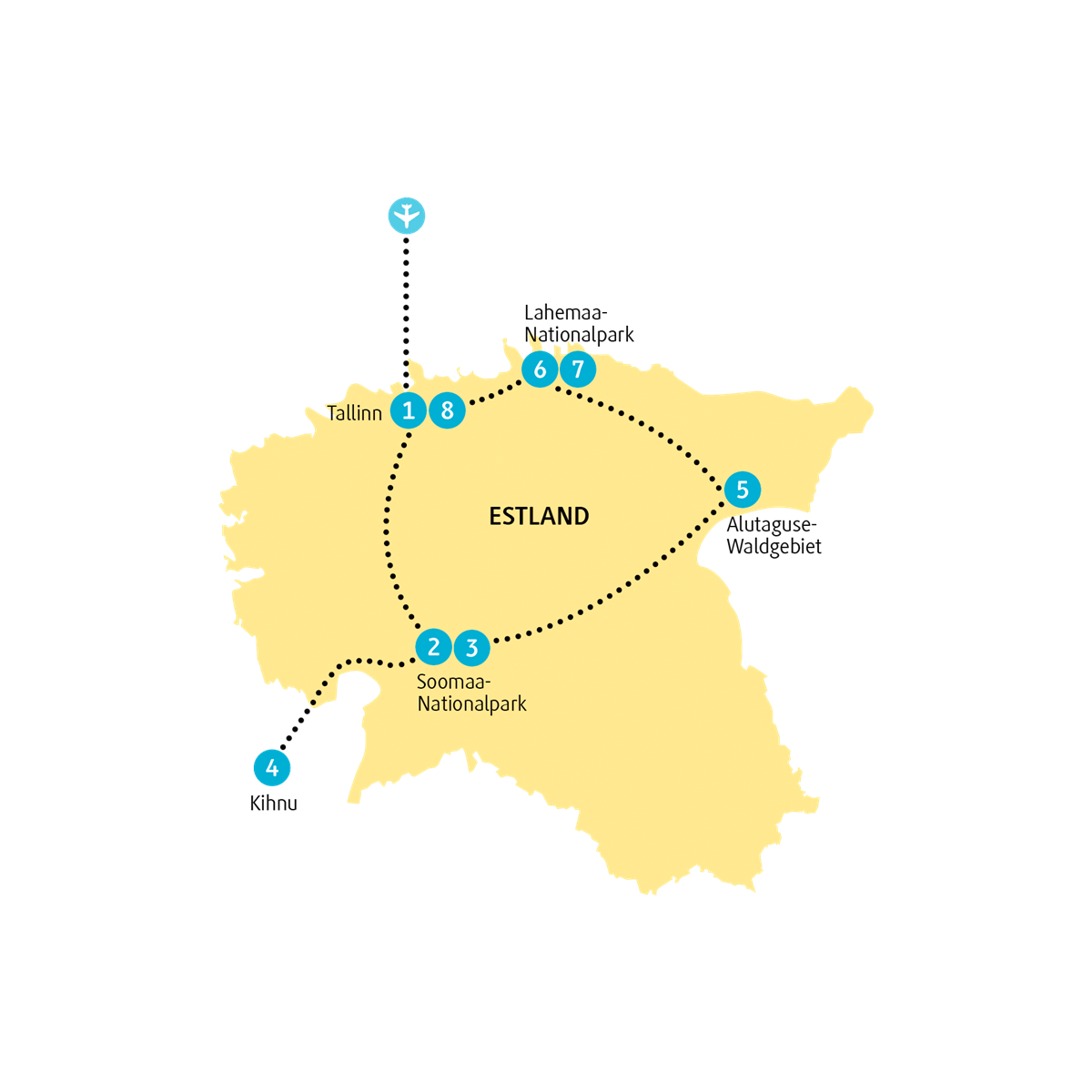 Heute geht es wieder in die Hauptstadt Estlands. Du wirst zum Flughafen in Tallinn gebracht und fliegst zurück nach Hause.